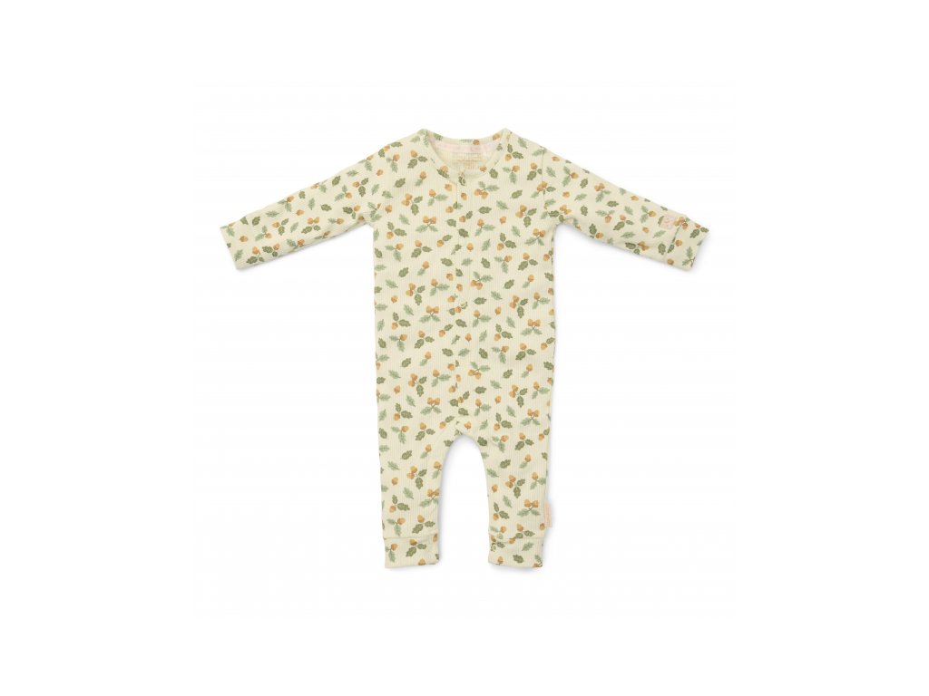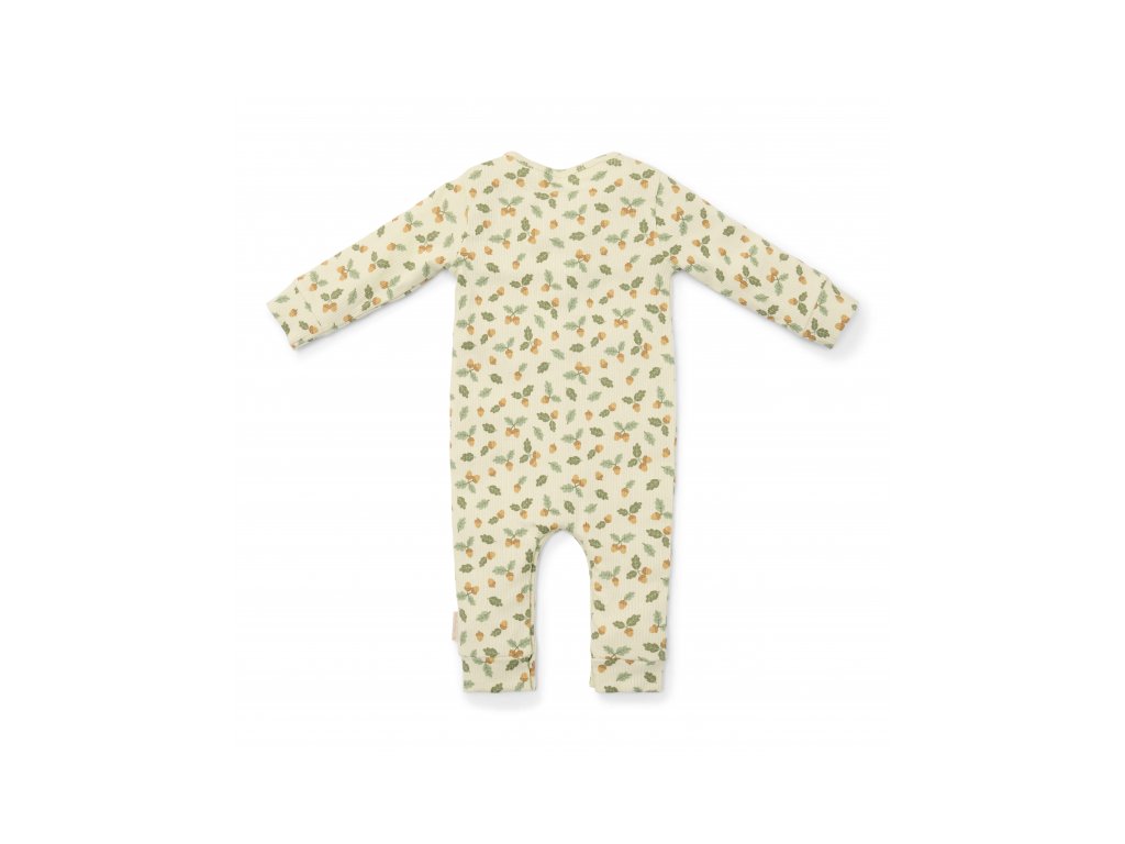 Overal na spanie z mäkkej organickej bavlny s jemnou potlačou má zapínanie na patentky na prednej strane av rozkroku pre ľahké obliekanie aj prebaľovanie dieťaťa.
