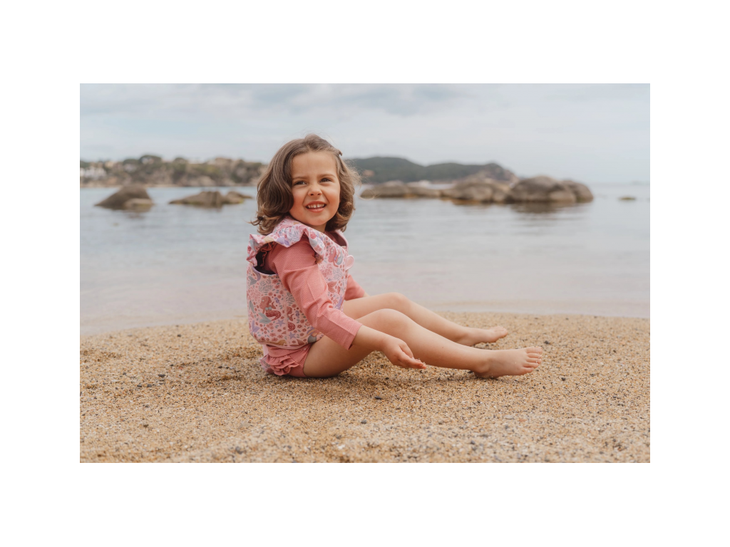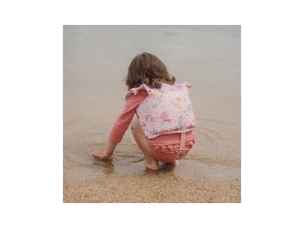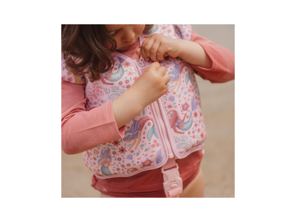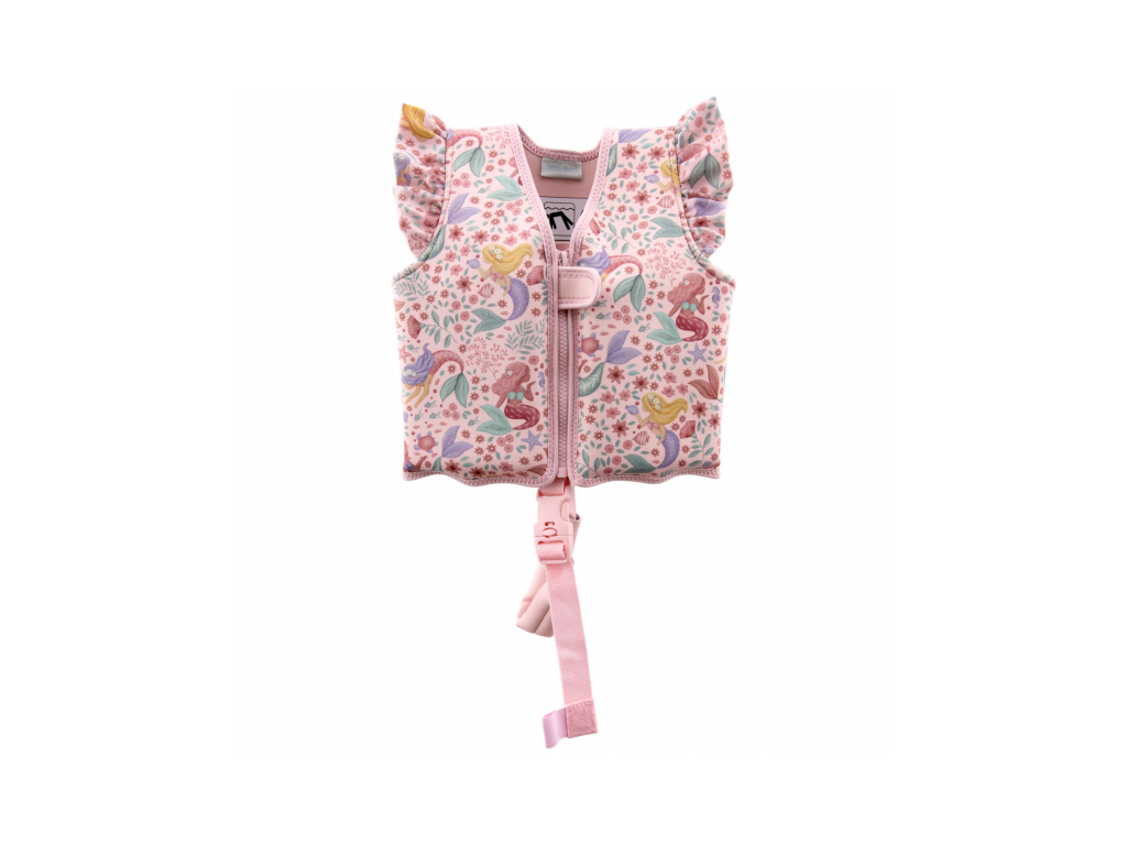 Plávacia vesta s krásnou potlačou morskej víly a kvetov pomôže vášmu dieťaťu získať istotu pri plaveckých začiatkoch a zároveň mu zaistí optimálnu voľnosť pohybu. Vďaka zapínaniu na zips sa vesta z príjemného neoprénového materiálu ľahko oblieka a vyzlieka.