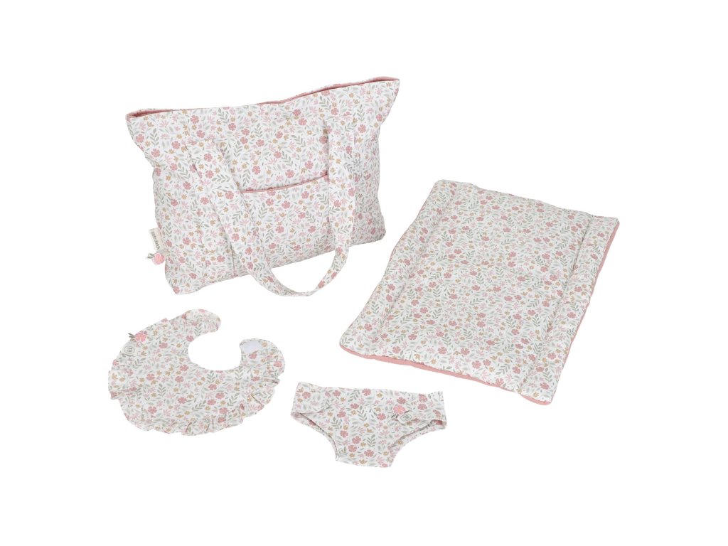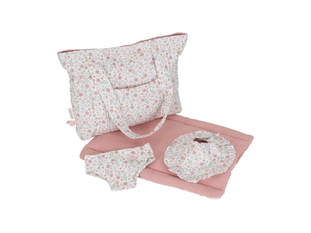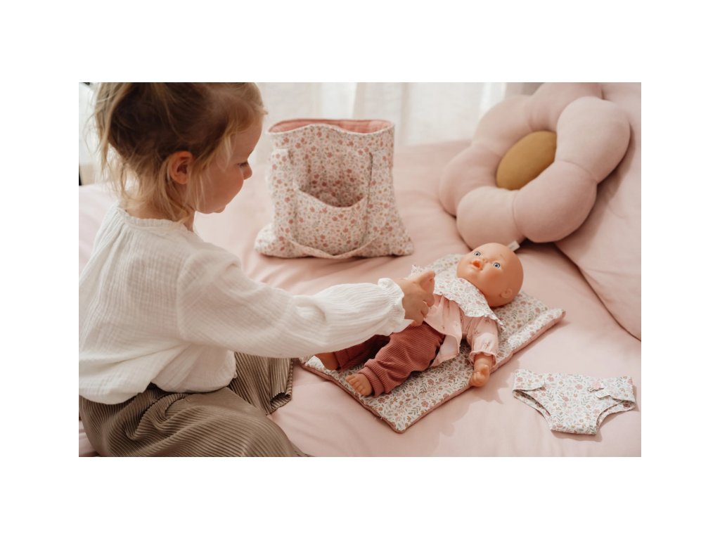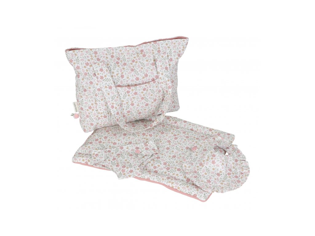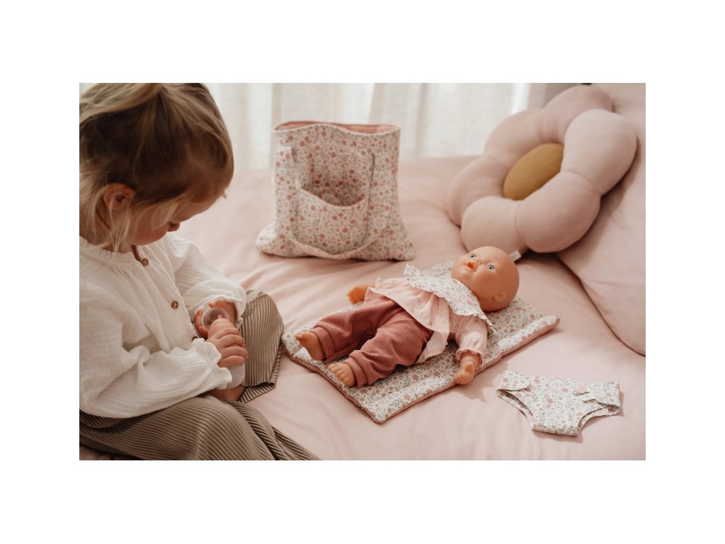 Štýlový kvetinový design krásne ladí s ďalšími doplnkami pre bábiky z kolekcie Little Dutch Soft Flowers.