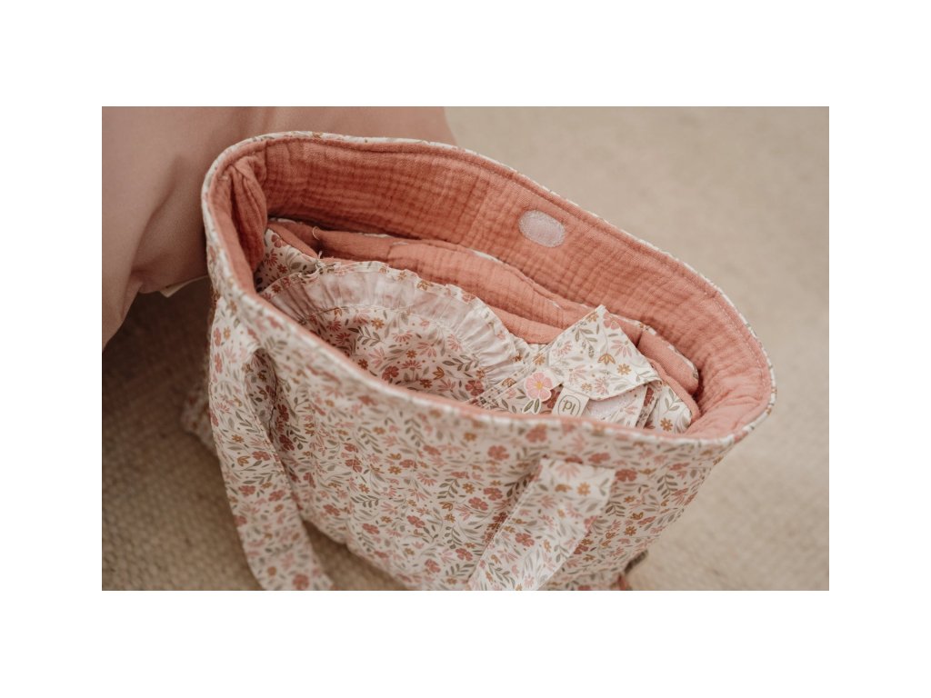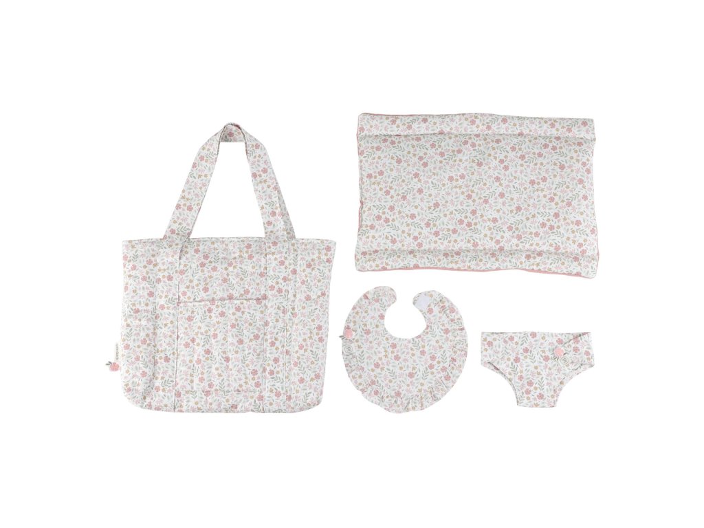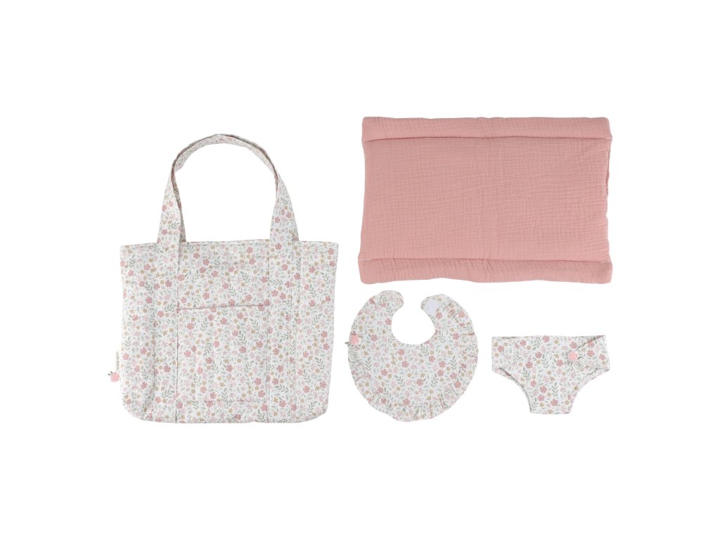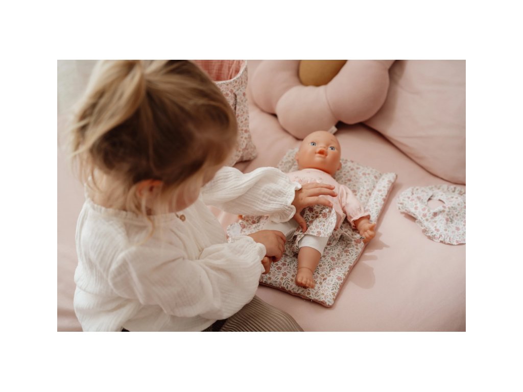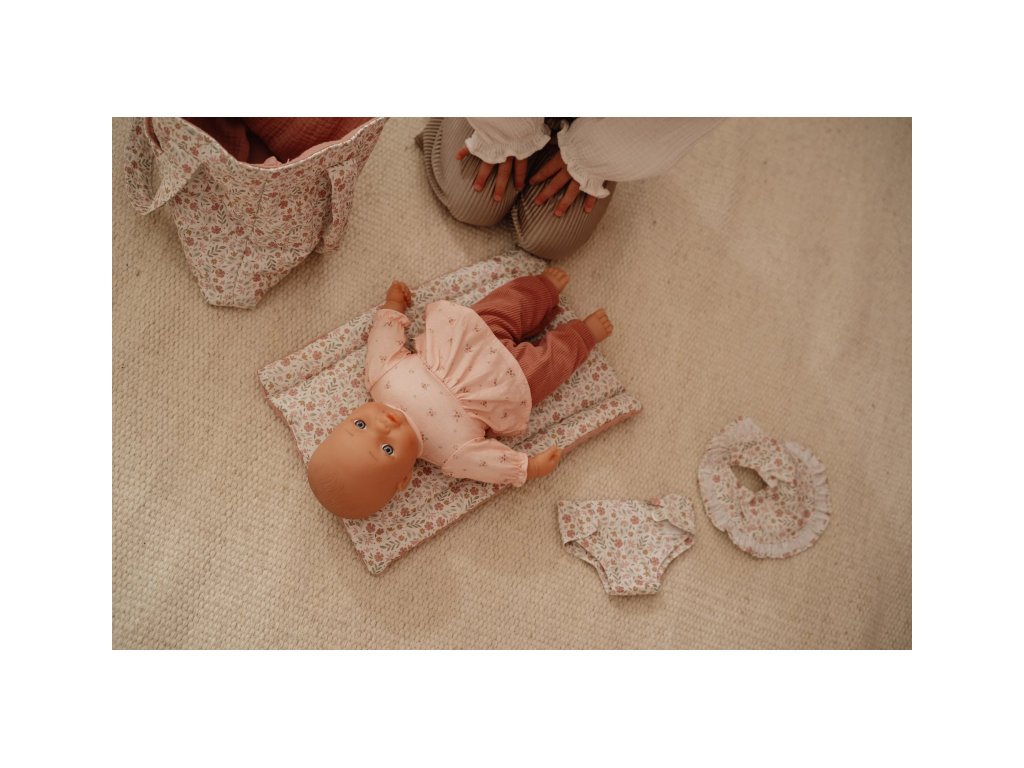 Štýlový kvetinový design krásne ladí s ďalšími doplnkami pre bábiky z kolekcie Little Dutch Soft Flowers.