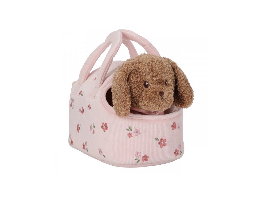 Psík prichádza v elegantnej kvetovanej taške s predným otvorom, aby mohol zvedavo vykukovať von. Vďaka tomu si ho deti môžu vziať kamkoľvek – na prechádzku, na výlet, do škôlky alebo napríklad k starým rodičom. Okolo krku má uviazanú šatku so svojim menom. Plyšová kosť na hranie má vo vnútri magnet, takže drží psíkovi pri papuľke.