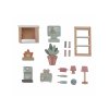 Súprava doplnkov do obývacej izby a kuchyne v krásnom drevenom prevedení vhodne dopĺňa vybavenie dreveného domčeka pre bábiky Little Dutch.
