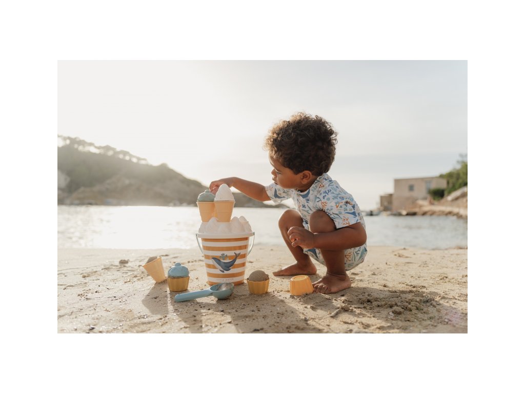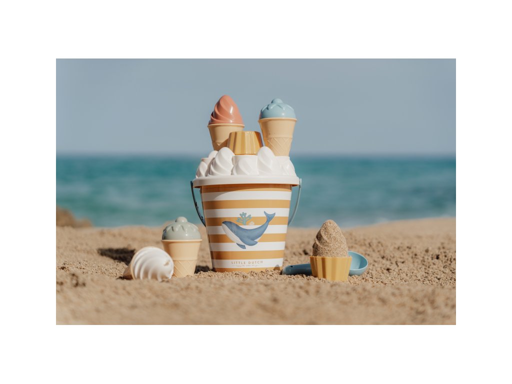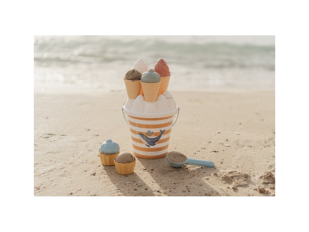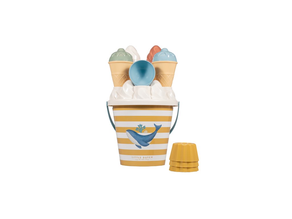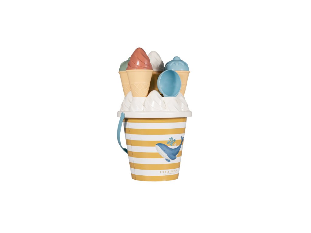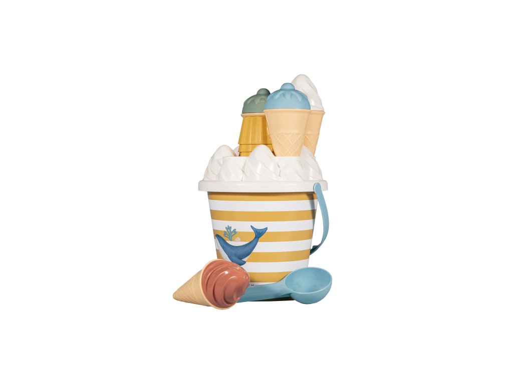 Zmrzlina patrí k letu as touto rozkošnou sadou si ju vaše deti vyrobia aj z piesku. Sadu tvorí vedierko s rukoväťou, štyri kornúty, naberačka na zmrzlinu, sedem formičiek a sitko.