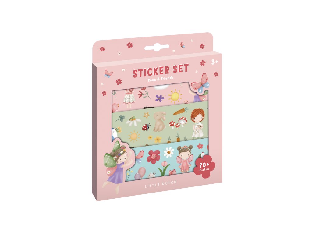 Sada tří archů krásných samolepek z kolekce Little Dutch Rosa & Friends s krásnými motivy Rosy, jejích kamarádů z louky a dalších přírodních motivů. Samolepky jsou vhodné pro lepení na papír.