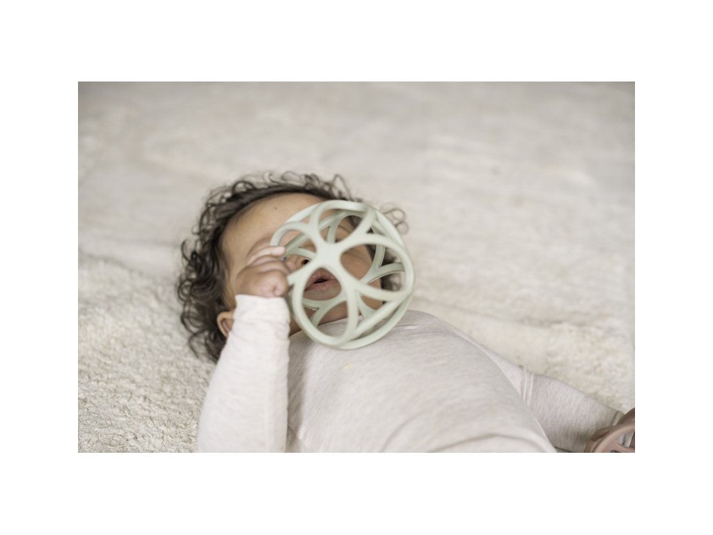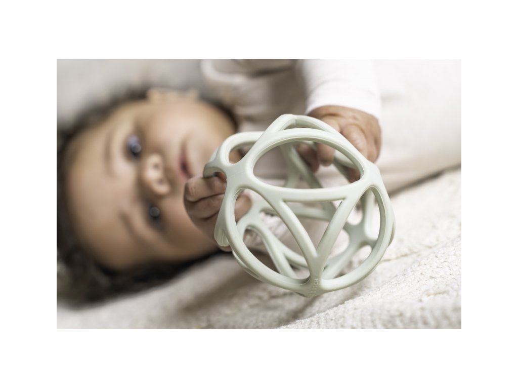 Lehounký míček z jemného silikonu má tvar pro snadné uchopení dětskými ručičkami. Míček láká dítě ke zkoumání rukama i ústy, slouží tak i jako kousátko, což oceníte při prořezávání prvních zoubků vašeho dítěte.
