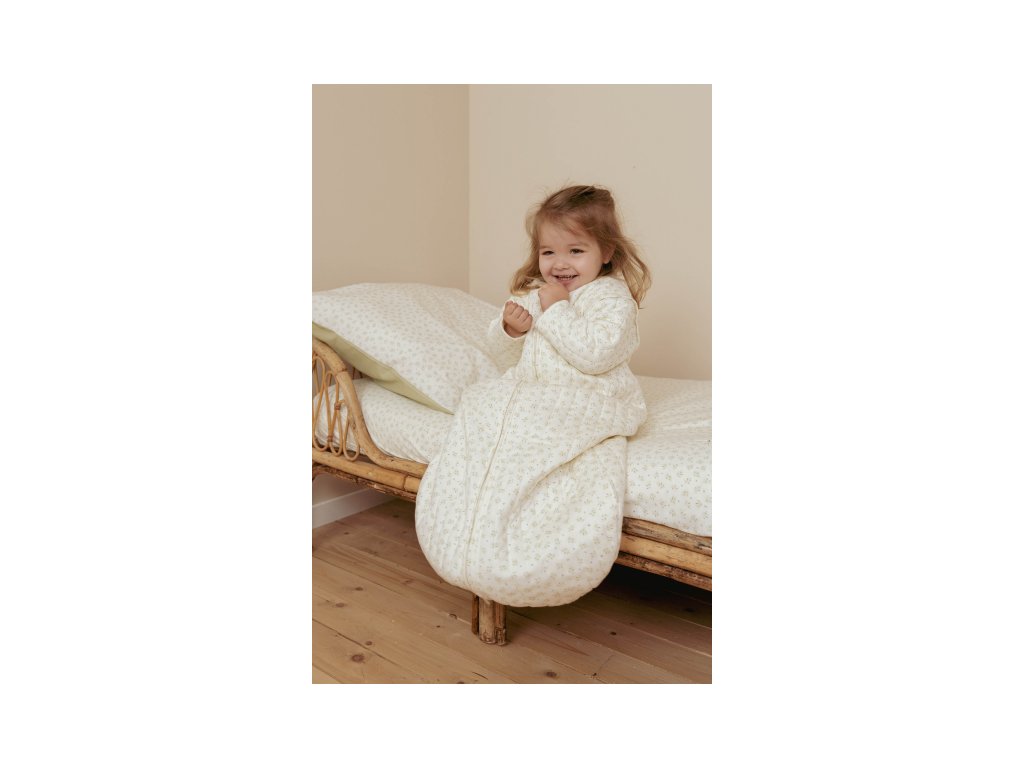 Praktický spací vak s oddeliteľnými rukávmi ponúka variabilitu pri použití podľa počasia a teploty v miestnosti. Vďaka jemnej výplni je vhodný na použitie namiesto perinky. Spací vak zaistí, že sa dieťa v noci neodkope a bude tak po celú dobu spánku v pohodlí a teple bez rizika prechladnutia. Kryté zipsy v prieramkoch umožňujú ľahké oddelenie rukávov, pokiaľ chcete spací vak používať v teplejšom prostredí bez rukávov. Zips na prednej strane umožňuje ľahké vloženie dieťaťa do spacieho vaku a prebaľovanie počas spania.