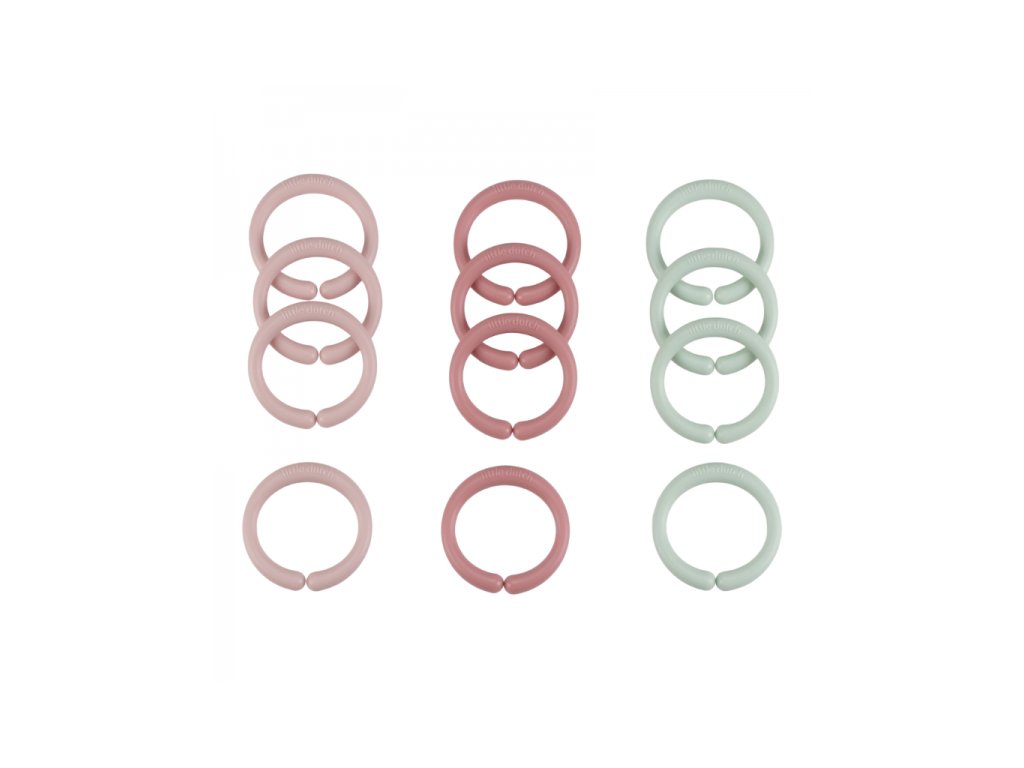 Multifunkční kroužky tvořící po spojení řetěz slouží jako hračka pro děti i jako pomůcka pro připevnění hraček ke kočárku či autosedačce. Dvanáct kroužků vytvoří řetěz ideální délky pro použití v kočárku.