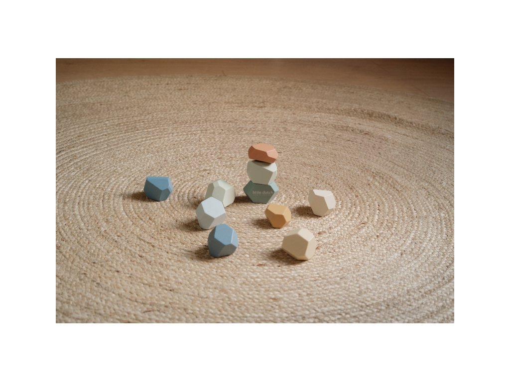 Balančné drevené kamene v krásnych pastelových farbách podporujú rozvoj jemnej motoriky a koncentrácie. Každý kameň má iný tvar a pri ich skladaní na seba sa dieťa učí trpezlivosti, sústredeniu a kreatívnemu mysleniu. Kamene je možné využiť aj na prvé počítanie a rozlišovanie farieb.