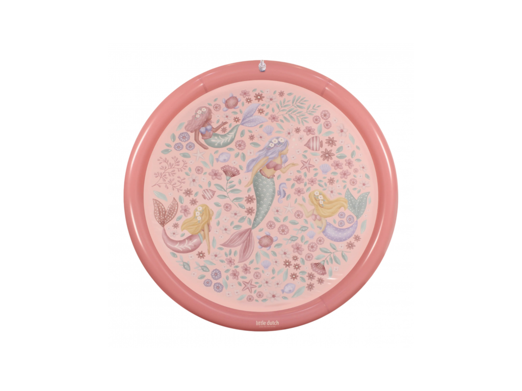 Originálna hracia podložka s vodotryskom, ktorý vytvoríte jednoducho pripojením na záhradnú hadicu s pomocou priloženej spojky. Podložka s krásnou potlačou motívov zo života morskej víly a kvetov je ideálny doplnok na záhradu počas horúcich letných dní. Deti si budú užívať behanie cez striekajúci vodotrysk aj hranie sa s vodou na podložke, ktorá funguje ako plytký bazénik.