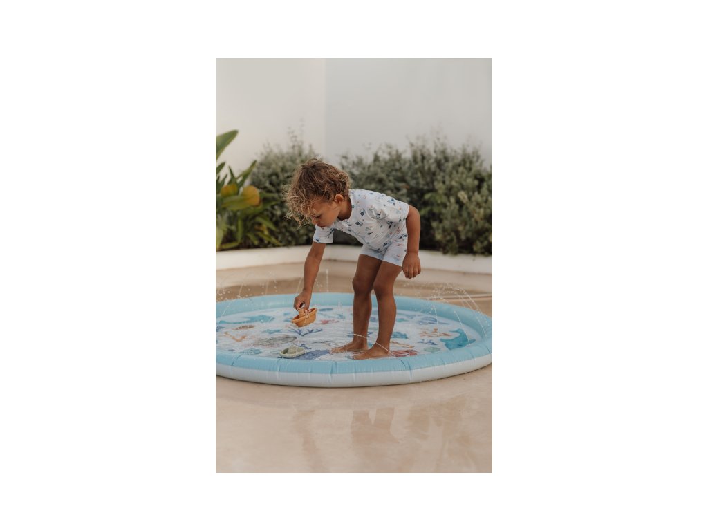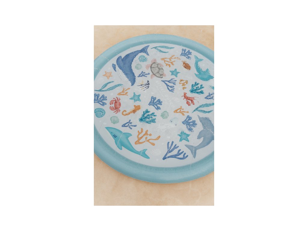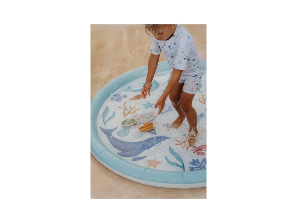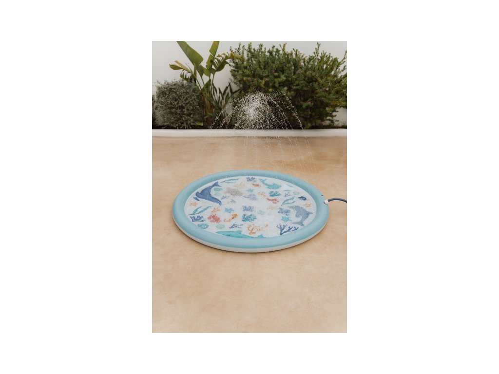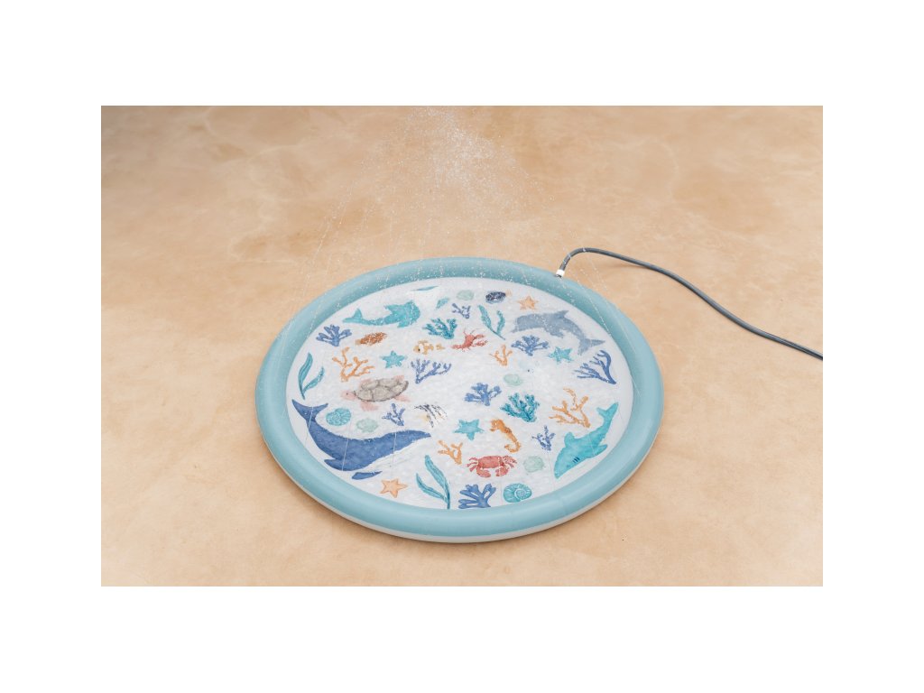 Originálna hracia podložka s vodotryskom, ktorý vytvoríte jednoducho pripojením na záhradnú hadicu s pomocou priloženej spojky. Podložka s krásnou potlačou motívov zo života pod morskou hladinou je ideálny doplnok na záhradu počas horúcich letných dní. Deti si budú užívať behanie cez striekajúci vodotrysk aj hranie sa s vodou na podložke, ktorá funguje ako plytký bazénik.
