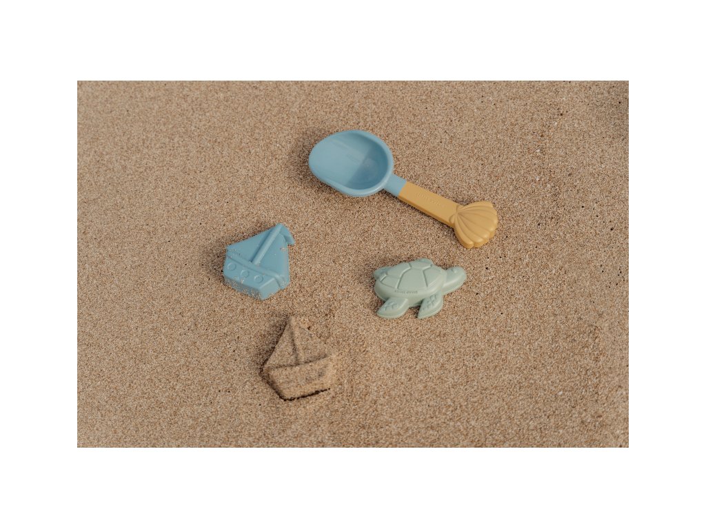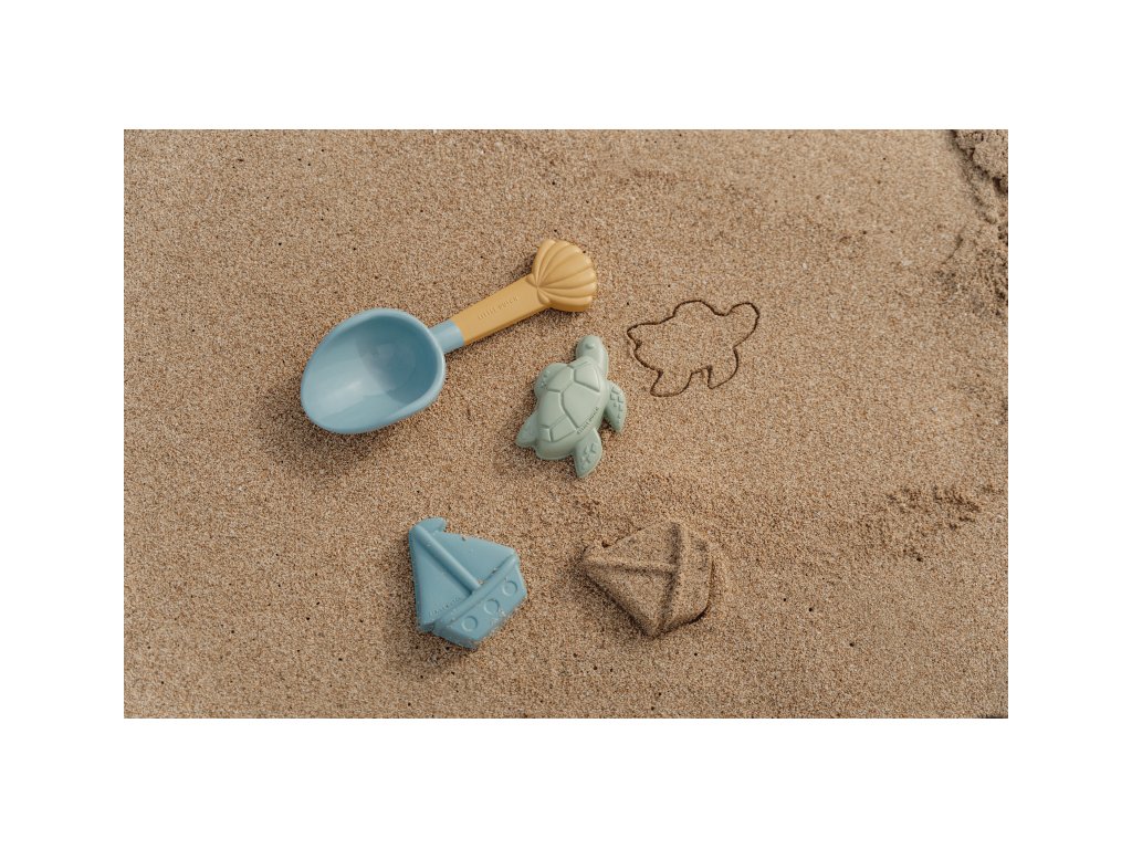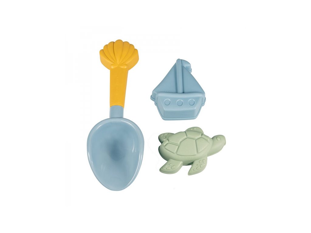 Súprava na piesok s motívmi života na mori sa bude deťom hodiť doma na záhrade aj pri mori na pláži. Sadu tvorí lopatka a dve formičky v kvalitnom prevedení z pevného plastu.