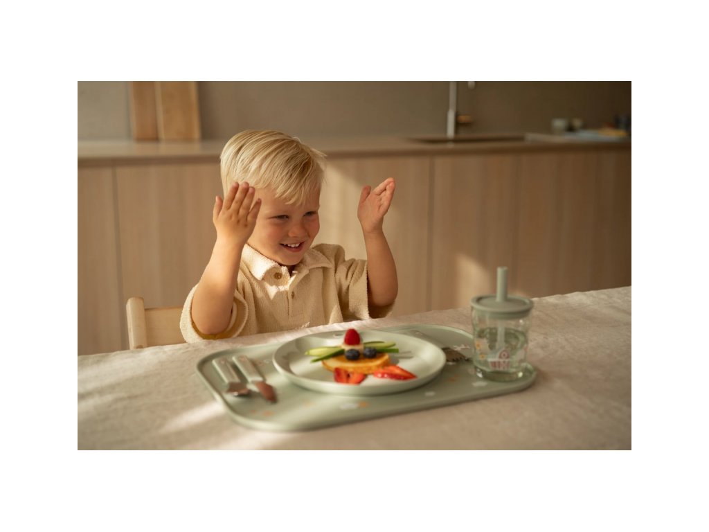 Téglik z priehľadného, extrémne odolného plastu s krásnou potlačou je vybavený viečkom a slamkou pre ľahké a bezpečné pitie. Viečko chráni obsah téglika pred vyliatím aj pred hmyzom.