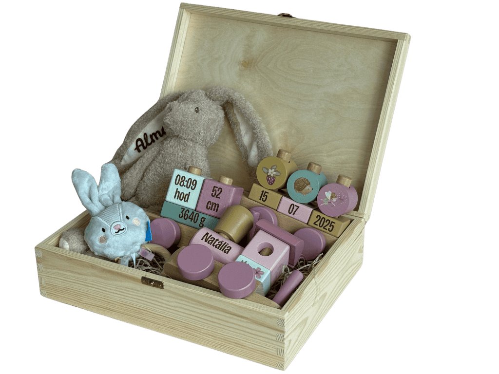 Pre tých, ktorí chcú niečo naozaj trvácne a elegantné, ponúkame aj gravírovanie priamo do dreva. Moderný laserový stroj vygravíruje každé meno a údaje s úplnou presnosťou do kociek vláčika. Nápis sa stane navždy súčasťou hračky – vďaka tomu bude vláčik nielen krásny, ale aj hodnotným spomienkovým predmetom na celé detstvo.