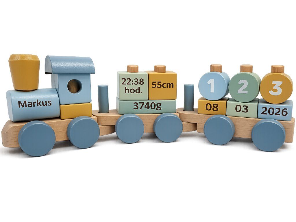 Pre tých, ktorí chcú niečo naozaj trvácne a elegantné, ponúkame aj gravírovanie priamo do dreva. Moderný laserový stroj vygravíruje každé meno a údaje s úplnou presnosťou do kociek vláčika. Nápis sa stane navždy súčasťou hračky – vďaka tomu bude vláčik nielen krásny, ale aj hodnotným spomienkovým predmetom na celé detstvo.