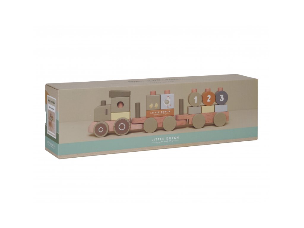 Predstavte si hračku, ktorá z detskej izby vytvorí miesto plné fantázie a radosti. Tento drevený vláčik, ktorý rozvíja jemnú motoriku, logické myslenie a predstavivosť. Vláčik je ozdobený ilustráciami zo sveta čarovného sveta Farma – ovečky, prasiatka, kravičky.