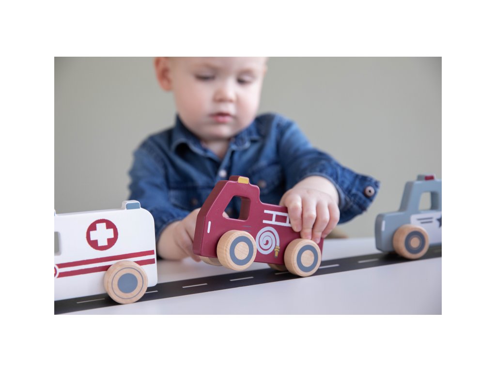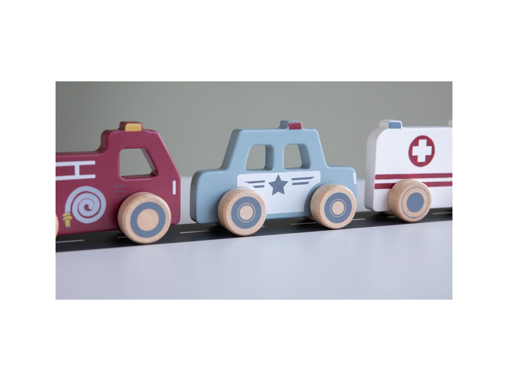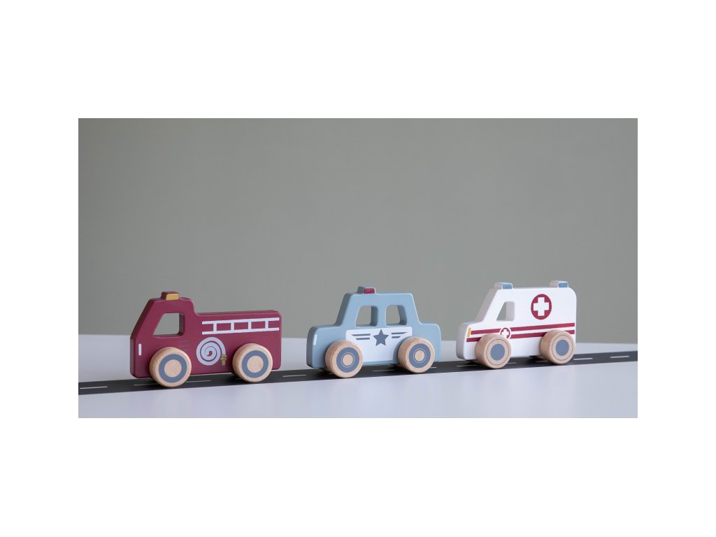Záchranársku sadu v krásnom drevenom prevedení tvorí sanitka, policajné vozidlo a hasičský nákladiak. Autíčka s robustnými drevenými kolesami majú tvar pre ľahké držanie a môžu sa tak stať prvými autíčkami vášho dieťaťa.
