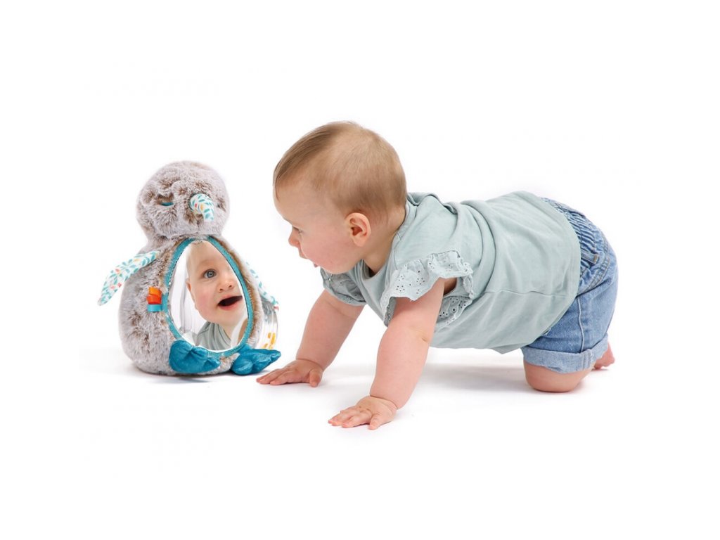 Měkká plyšová hračka v podobě roztomilého kiwiho se zrcátkem, šňůrkou s korálky a chrasticími kroužky s kuličkami láká k mazlení i zkoumání a objevování.