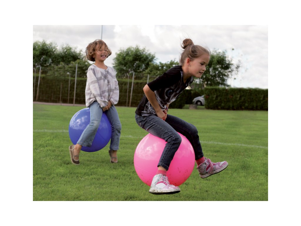 Nafukovacia gymnastická lopta Ludi s držadlom pre deti. Držadlo a protišmykový povrch na spodnej časti lopty pomáhajú udržať stabilitu pri skákaní na lopte. Vyrobený z odolného materiálu vhodného pre použitie doma aj vonku. Vhodné pre deti od 5 rokov. Nosnosť: 50 kg.