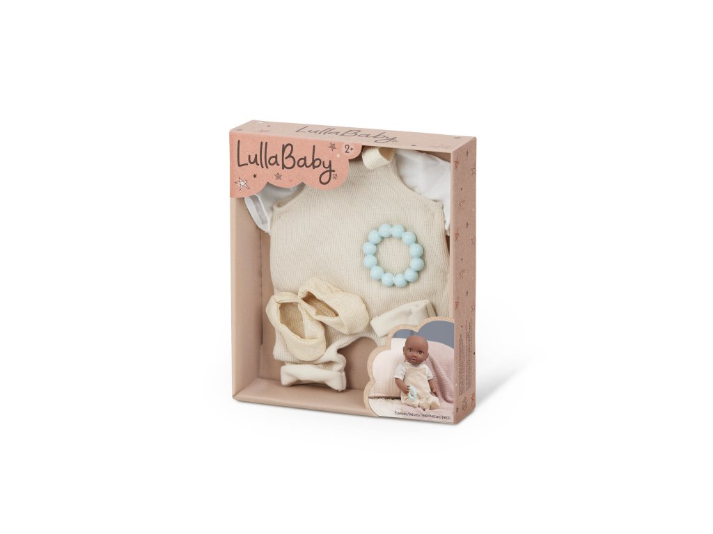 Pripravte bábiku na aktívny deň plný hrania s krásnym oblečkom LullaBaby! Štýlová kombinácia nohavíc s trakmi a tričká doplnená o topánky a hryzátko dodá každej bábike šmrnc a pripraví ju na všetky detské výpravy. Vďaka jednoduchému zapínaniu sa obliečok ľahko oblieka a podporuje rozvoj jemnej motoriky a samostatnosti. Hranie s bábikou podporuje rozvoj jemnej motoriky, empatie i predstavivosti.