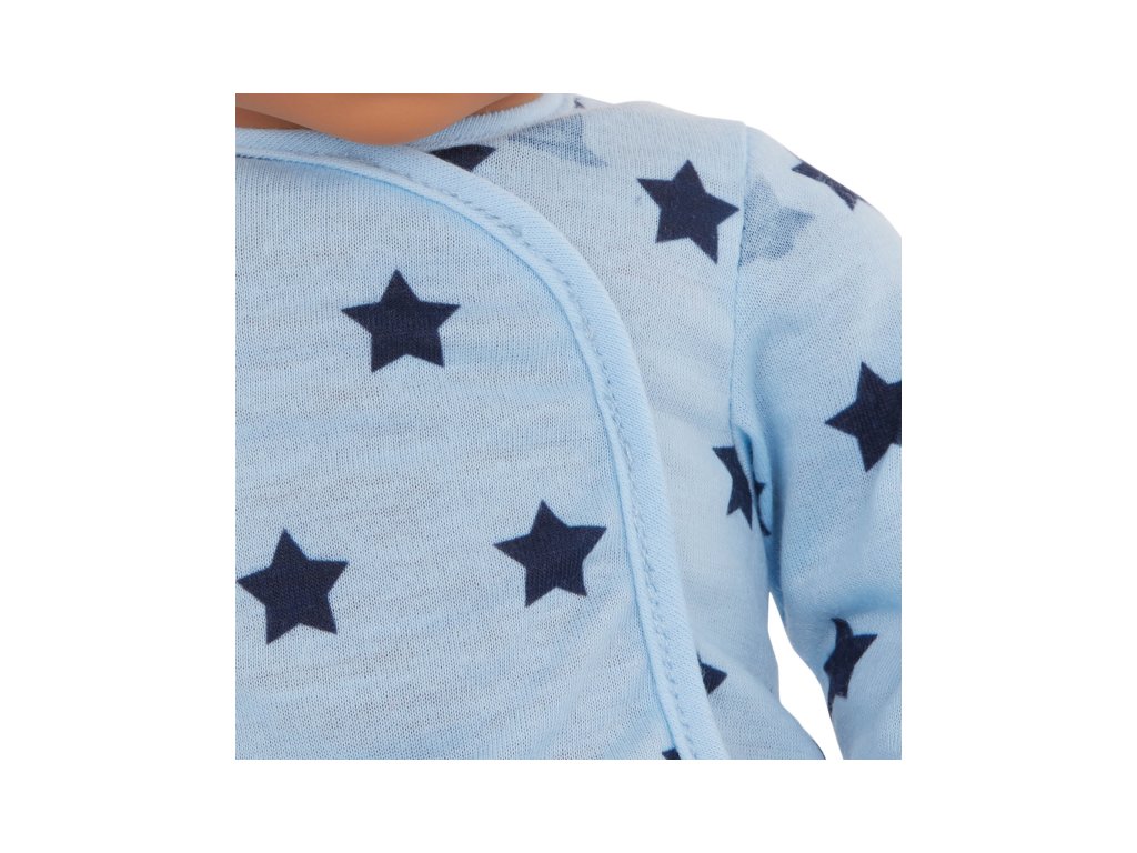Pripravte bábiku na sladké snívanie s rozkošným nočným oblečkom LullaBaby! Tento pohodlný pyžamkový overal s hviezdičkami je doplnený o čiapočku s mäkkými 3D hrotmi, hryzátko a hebké papučky – ideálny outfit pre večerné tulenie aj nočné hranie. Vďaka jednoduchému zapínaniu sa ľahko oblieka, takže si s ním poradia aj malé detské rúčky. Hranie s bábikou podporuje rozvoj jemnej motoriky, empatie i predstavivosti.