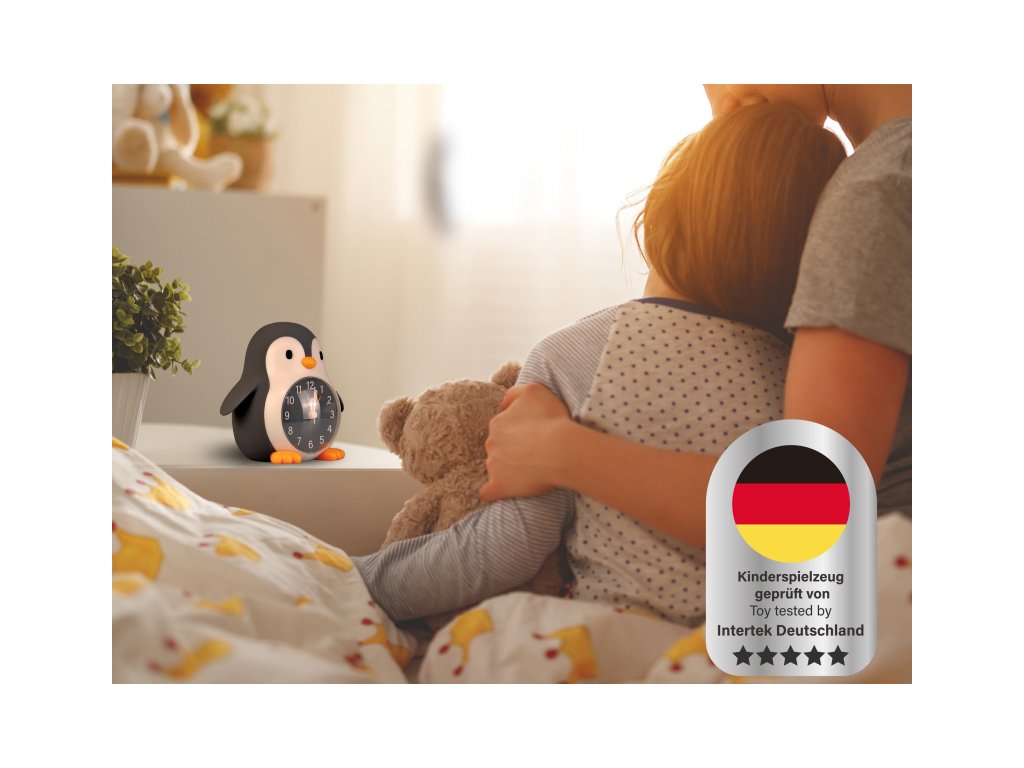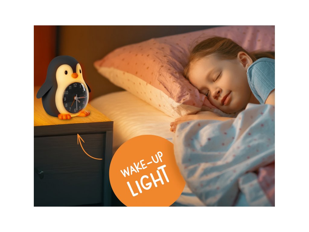 Rozkošné nočné svetlo s integrovaným budíkom v podobe tučniaka MegaLight Poppy Penguin pomáha deťom zaspávať aj prebúdzať sa s úsmevom. Kombinuje funkciu upokojujúceho nočného svetla, praktického časovača a jemného prebudenia pomocou svetla. Vďaka svojmu dizajnu bude aj krásnou dekoráciou v detskej izbe.