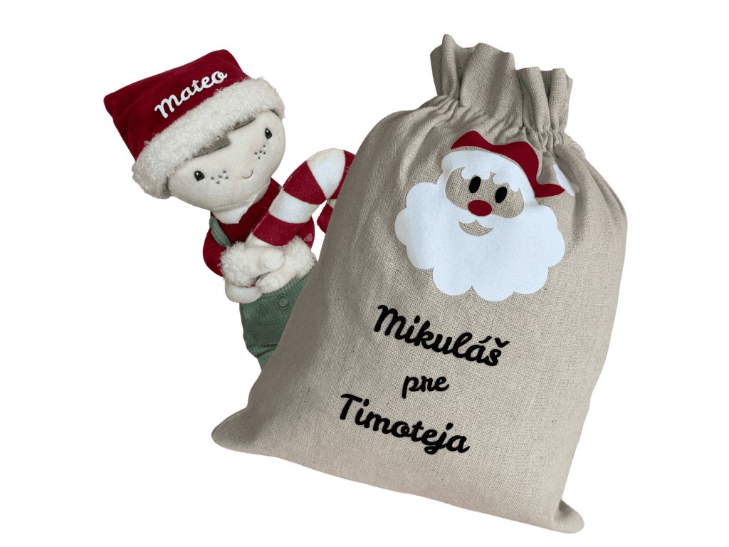 🎅 Mikulášska sada – vrecúško s menom + bábika Jim (vianočná edícia)