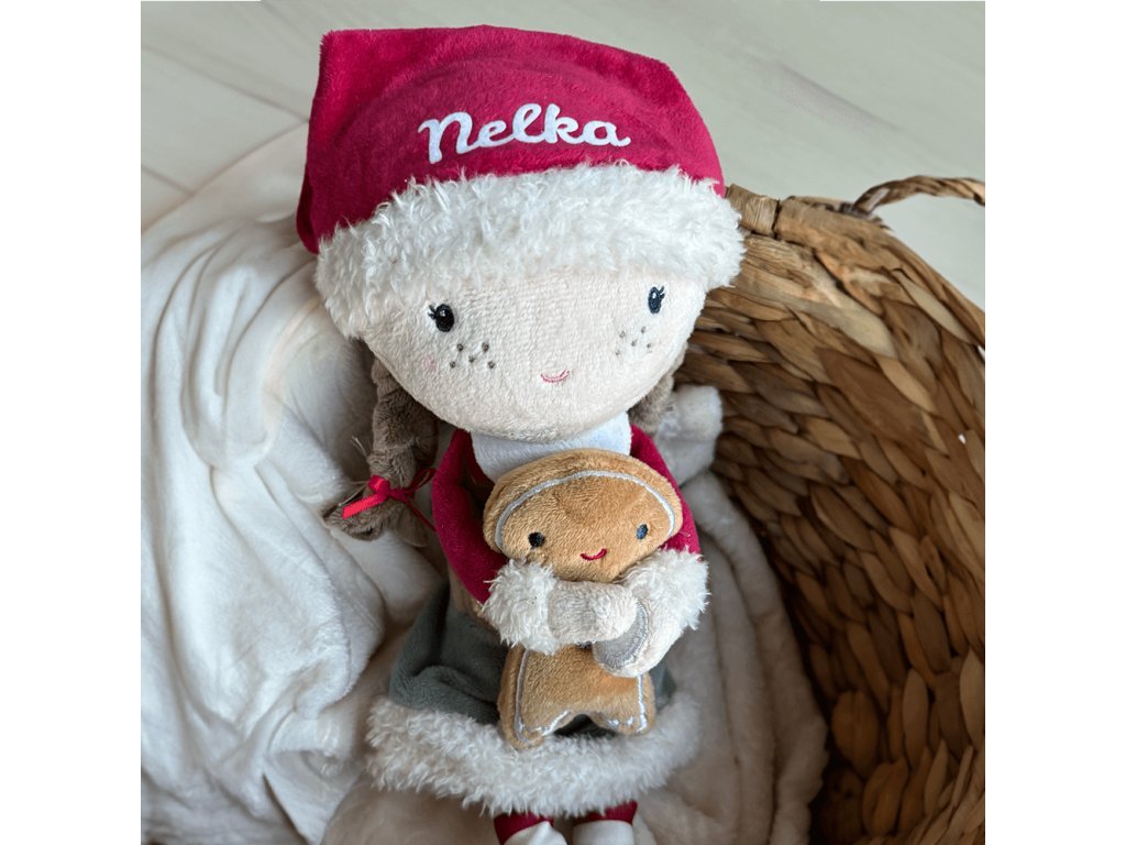 Bábika Little Dutch – Rosa (35 cm, vianočná edícia) – nádherná, mäkučká bábika so sviatočnými detailmi, ktorá rozvíja detskú predstavivosť, empatiu a prináša pocit lásky a bezpečia.