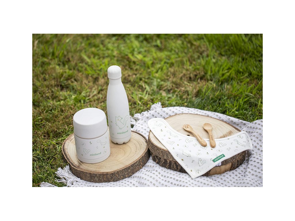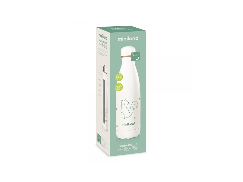 Vákuová termoska Miniland v tvare fľaše je vyrobená z vysoko kvalitnej dvojstennej ocele a vďaka tomu udrží až 24 hodín požadovanú teplotu nápoja. Termoska je potiahnutá jemným materiálom na príjemné uchopenie.