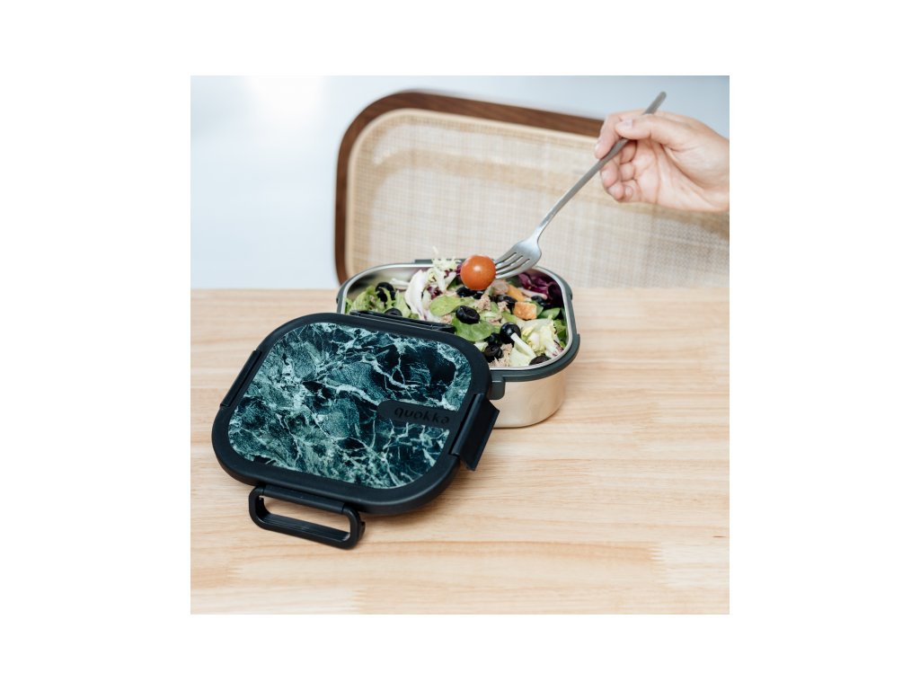 Box na jedlo Quokka Kai z vysoko kvalitnej nerezovej ocele s plastovým vekom je vhodný na bezpečné prenášanie desiaty či obeda do školy, do práce aj na výlety. Spoľahlivé, 100% tesniace veko s klipovým zapínaním chráni obsah boxu pred vyliatím či vysypaním. Nerezový materiál neabsorbuje pachy a je tak vhodný pre akékoľvek jedlo.
