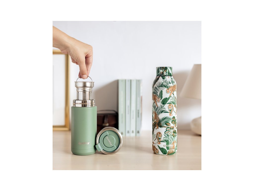Súčasťou termohrnčeka je vyberateľné sitko, vhodné napr. na sypaný čaj. Široké hrdlo umožňuje vloženie kociek ľadu.