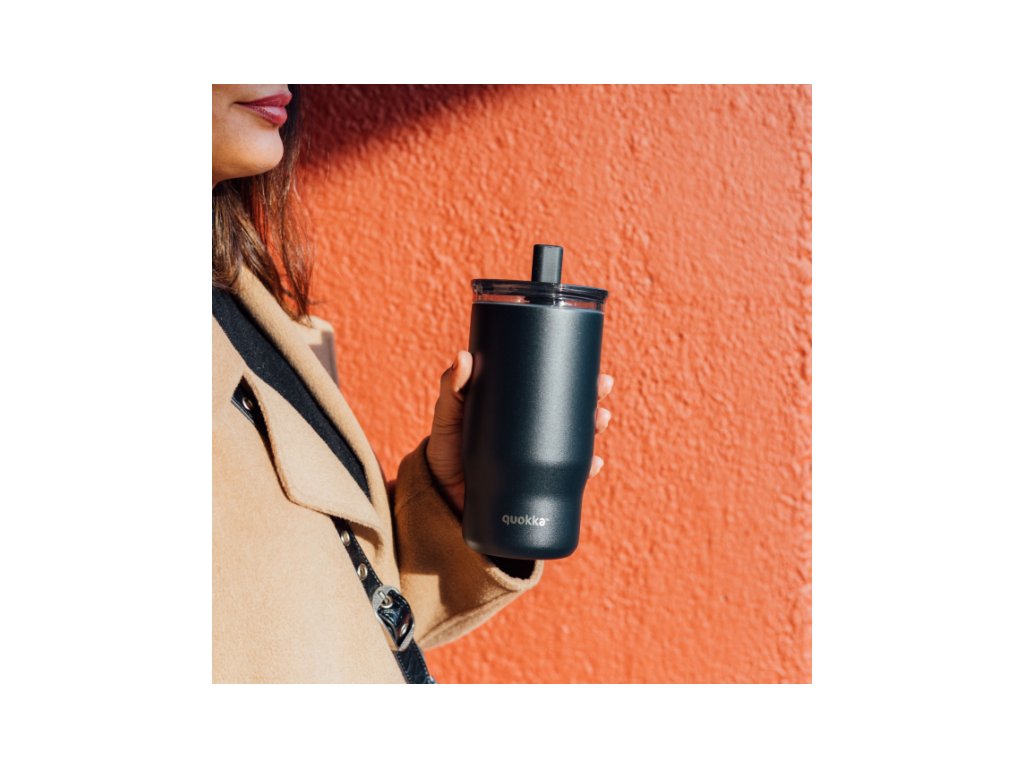 Termohrnček Quokka Mist z vysoko kvalitnej dvojstennej ocele udrží nápoj aj počas horúcich letných dní príjemne studený. Termohrnček s náustkom a slamkou umožňuje ľahké pitie bez nutnosti nakláňania. Spoľahlivo tesniace plastové viečko chráni obsah hrnčeka pred vyliatím. Široké hrdlo umožňuje vloženie kociek ľadu a zároveň sa vďaka nemu hrnček ľahko čistí. Údržbu uľahčuje aj odnímateľná široká slamka.