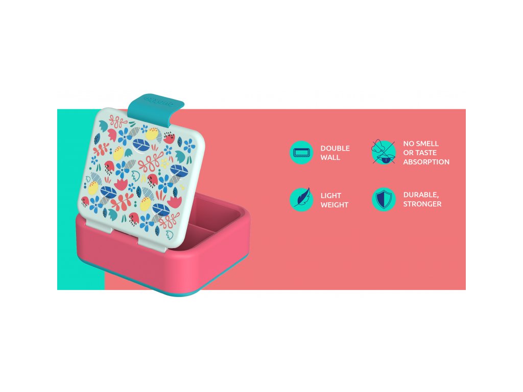 Detský box na jedlo Quokka Twist Kids z vysoko kvalitného plastu je vhodný na bezpečné prenášanie desiaty do školy aj na výlety. Box má steny z dvojitého materiálu a spoľahlivo tesniace veko so zaklapávacím uzáverom. Tri vnútorné priehradky umožňujú oddeliť jednotlivé časti desiaty.