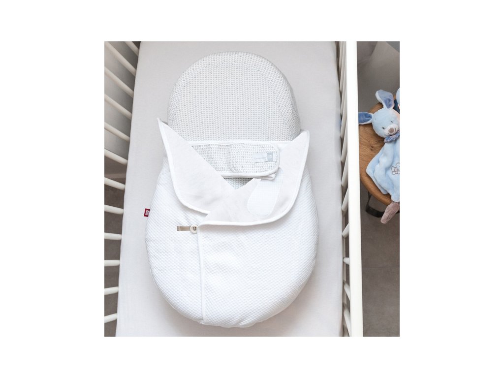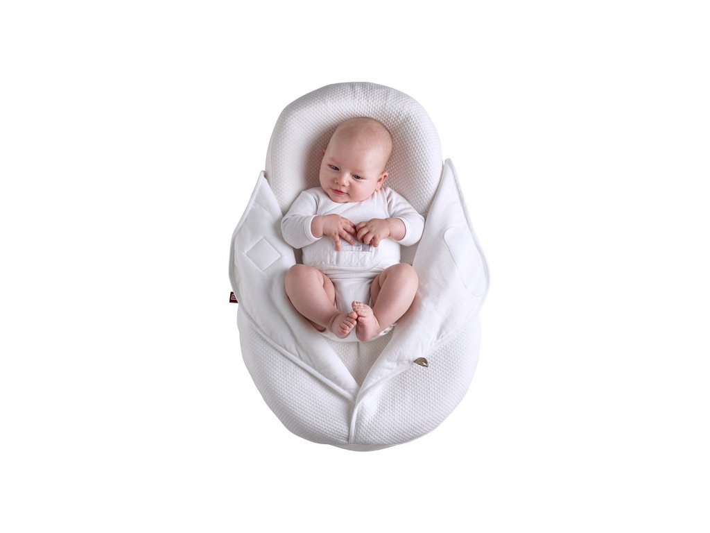 Prešívaná prikrývka špeciálne navrhnutá na použitie s podložkou CocoonaBaby. Tvar a upevňovací systém udržujú ústa a nos dieťaťa voľné. Zapínanie na suchý zips a gombík umožňujú ľahký prístup k dieťaťu.