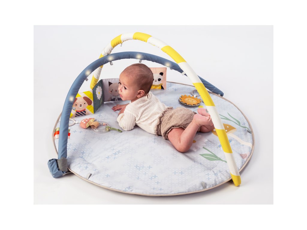Interaktívna hracia deka Taf Toys s osvetlenou hrazdou, hudobným kolotočom a množstvom rôznorodých aktivít je dokonalým zmyslovým ihriskom pre bábätká. Podnecuje rozvoj jeho jednotlivých zmyslov, motoriky a zvedavosti už od narodenia.