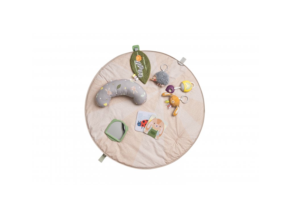 Originální odnímatelné hračky včetně bezpečného zrcátka upoutají pozornost dítěte a zajistí mu hodiny zábavy vleže na zádech, na boku i na bříšku. Speciální půlkruhová lišta po obvodu deky je určena pro umístění karet s výraznými obrázky a motivy, které společně se speciálně tvarovaným polštářkem podněcují dítě ke hře na bříšku. Vysoce kontrastní černobílé ilustrace jsou určeny pro děti od narození do 3 měsíců, ilustrace ve výrazných barvách jsou ideální pro děti od 3 měsíců. Poloha na bříšku přináší děťátku jiný pohled na svět a posiluje krční a zádové svaly, které později umožňují dítěti začít se přetáčet, lézt a sedět bez opory.