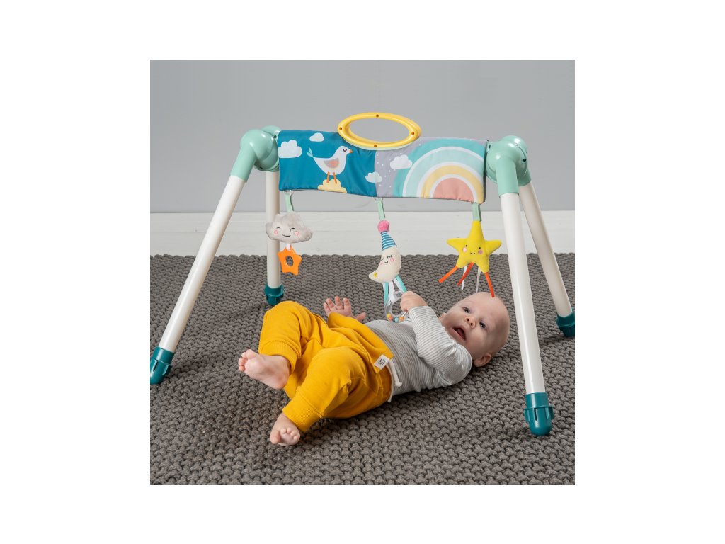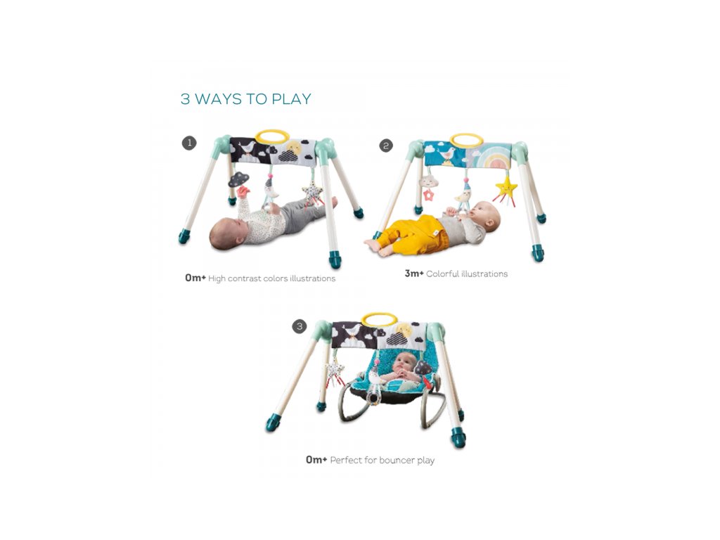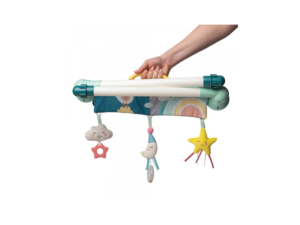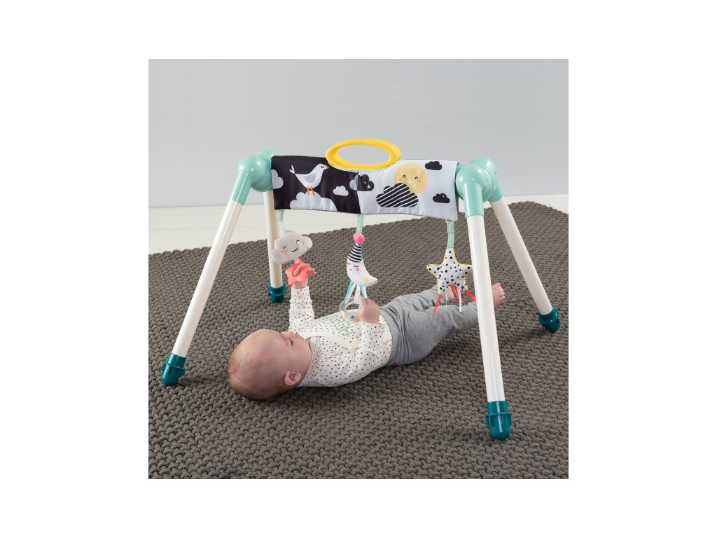 Skladacia hrazda zabaví vaše bábätko doma i na cestách. Na hrazde sú zavesené tri hrkajúce a cinkajúce hračky s hryzátkami. Hračky sa upevňujú na suchý zips a je možné ich umiestniť kdekoľvek na hrazde. Hrazdu využijete pre zabavenie dieťaťa ležiaceho na deke aj v hojdacom lehátku.