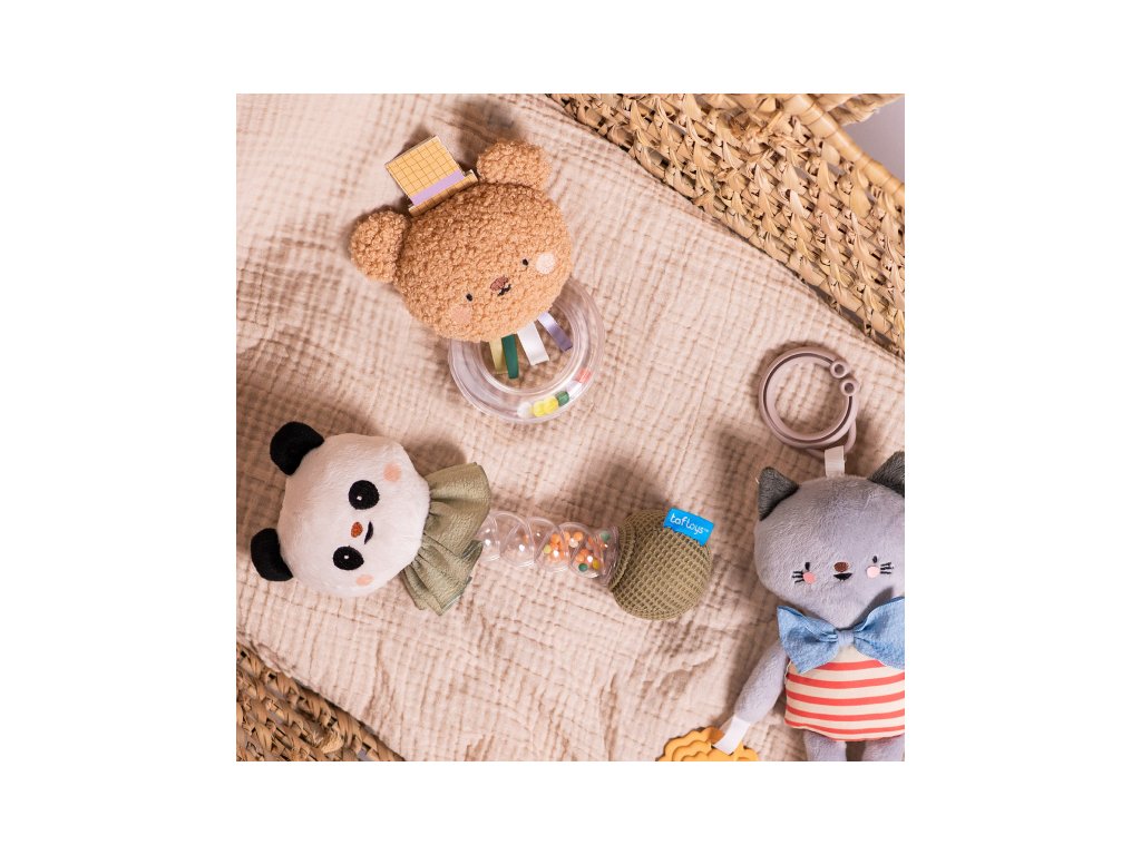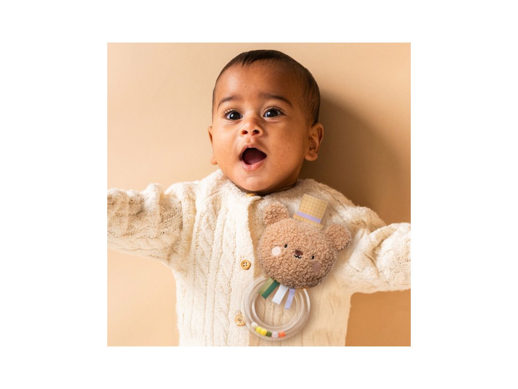 Hrkálku tvorí mäkká plyšová hračka v tvare rozkošného medvedíka Brendona a priehľadný plastový krúžok naplnený farebnými korálkami. Rôzne tvary a povrchy hračky podnecujú dieťa k skúmaniu rukami aj ústami a pomáhajú rozvíjať jemnú motoriku a zmysly dieťaťa.