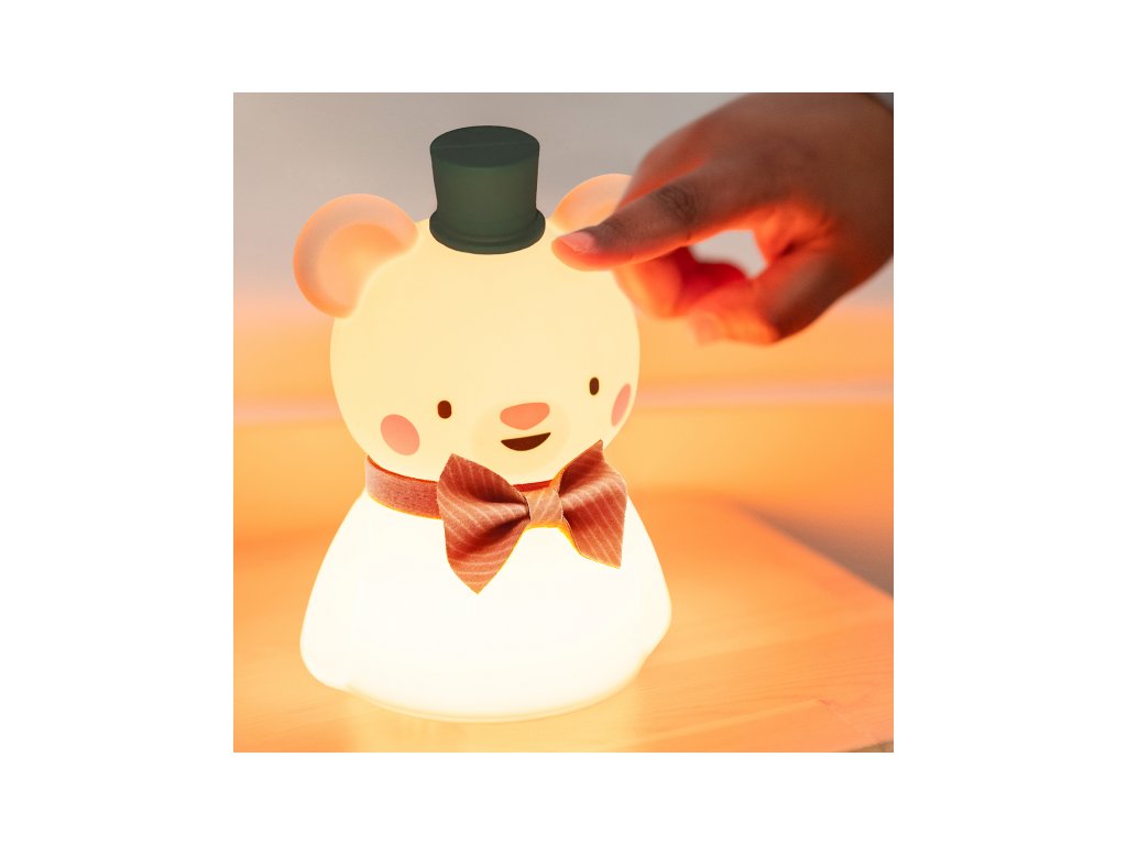 Detská nočná lampička v podobe rozkošného medvedíka poskytuje jemné upokojujúce svetlo, ktoré pomáha deťom zaspať s pocitom bezpečia. Lampička je vyrobená z jemného silikónu príjemného na dotyk a nabíja sa pomocou USB-C kábla.