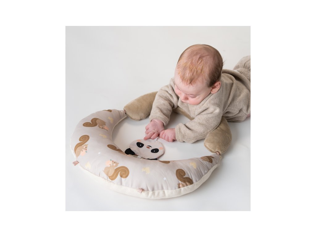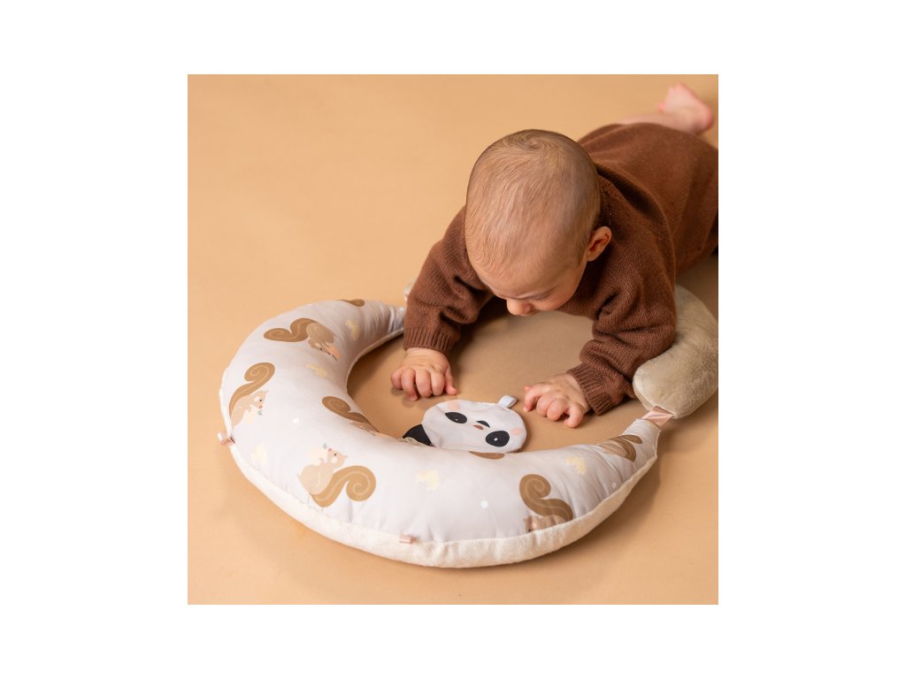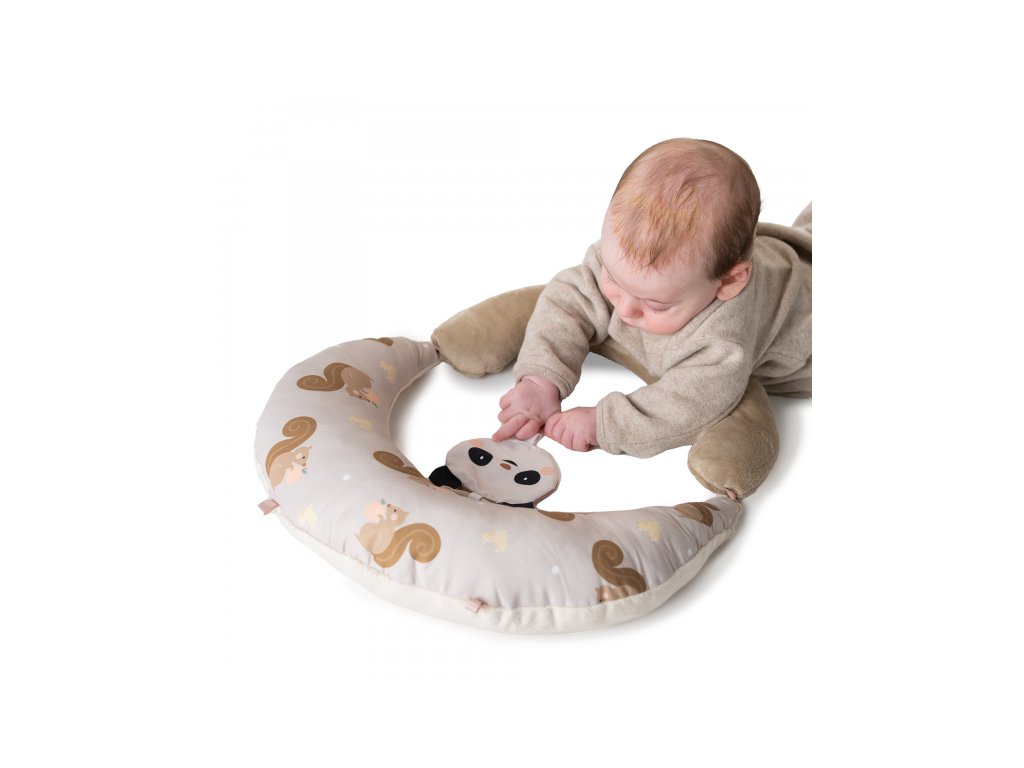 Polštářek z měkkého, příjemného materiálu je speciálně navržený, aby podporoval hraní dítěte na bříšku. Pro malého kojence, který tráví většinu dne i noci ležením na zádech, je důležité, aby trávil několikrát denně čas ležením na bříšku a takzvaným “pasením koníčků”. Poloha na bříšku přináší děťátku jiný pohled na svět a posiluje krční a zádové svaly, které později umožňují dítěti začít se přetáčet, lézt a sedět bez opory.