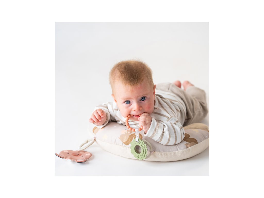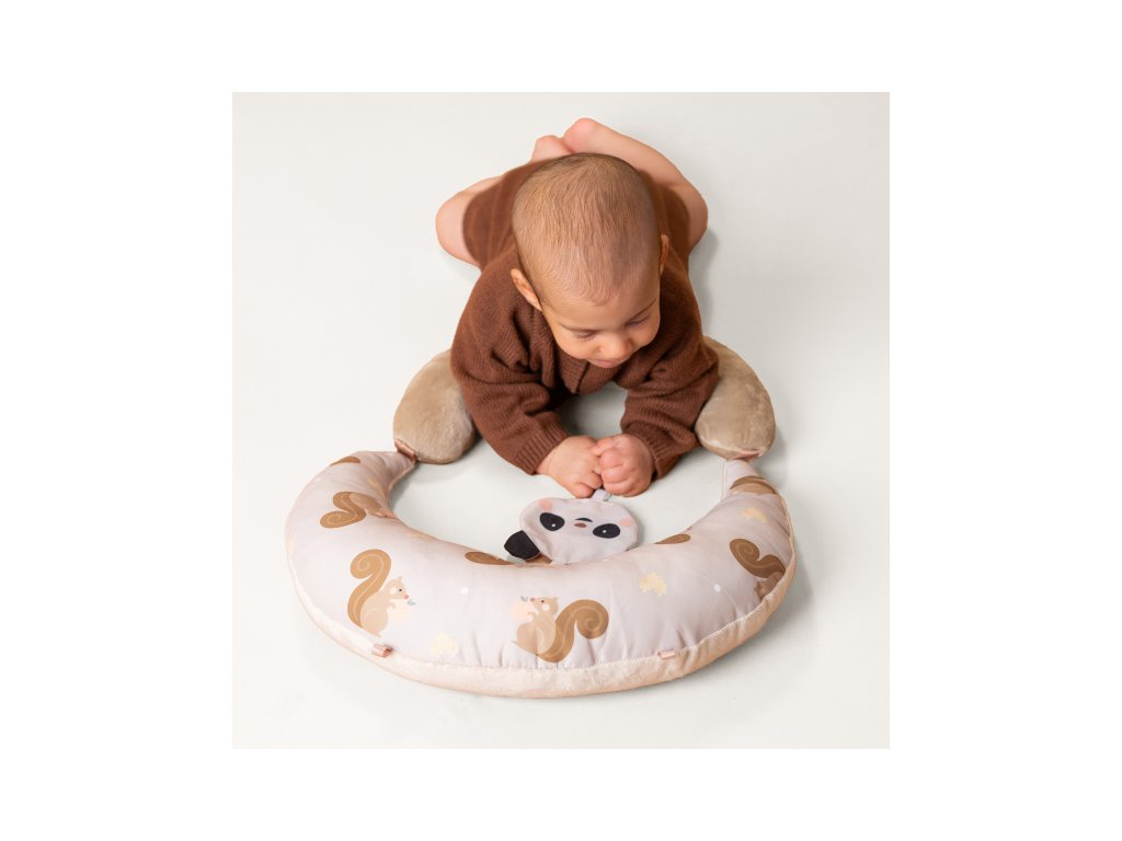 - Větší a pevnější polštářek pro děti od 2 do 6 měsíců podpírá hrudník dítěte a ponechává mu volné ruce - ideální pro natahování se po hračkách, smyslové objevování a první pokusy o plazení