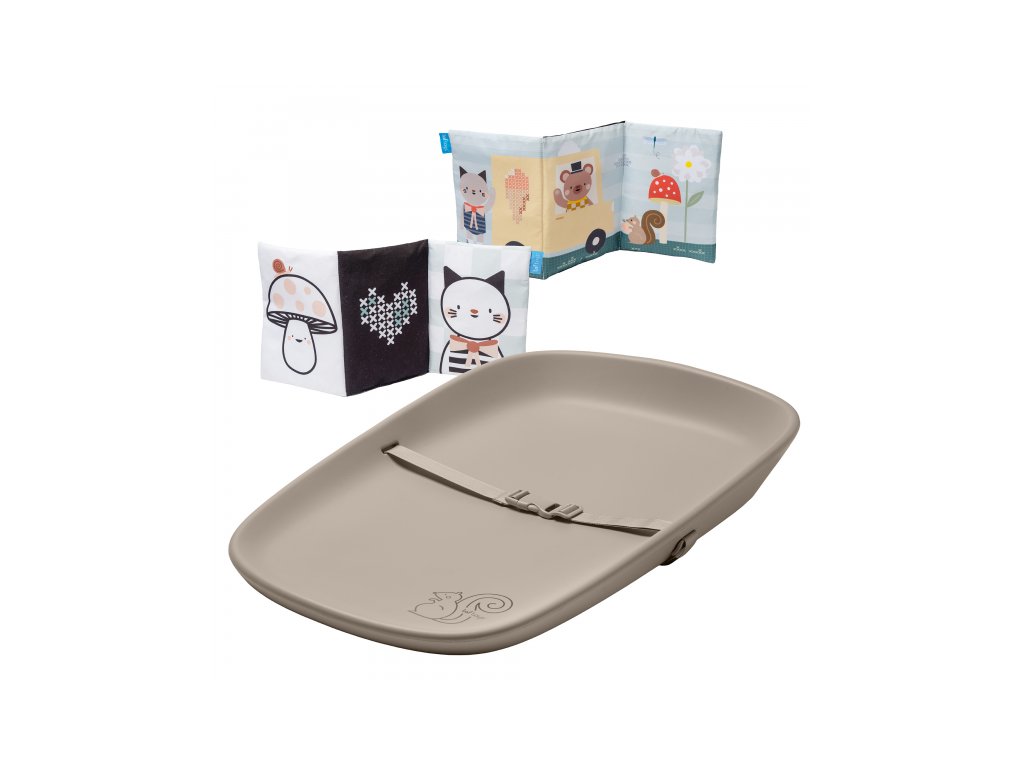 Přebalovací podložka Taf Toys mění každé přebalování v příjemný okamžik pro miminko i pro rodiče. Podložka je vhodná nejen na přebalování, ale také pro hru na bříšku nebo jako hrací podložka na cestách. Součástí balení je textilní knížka pro zabavení miminka během přebalování i pro hru na bříšku.