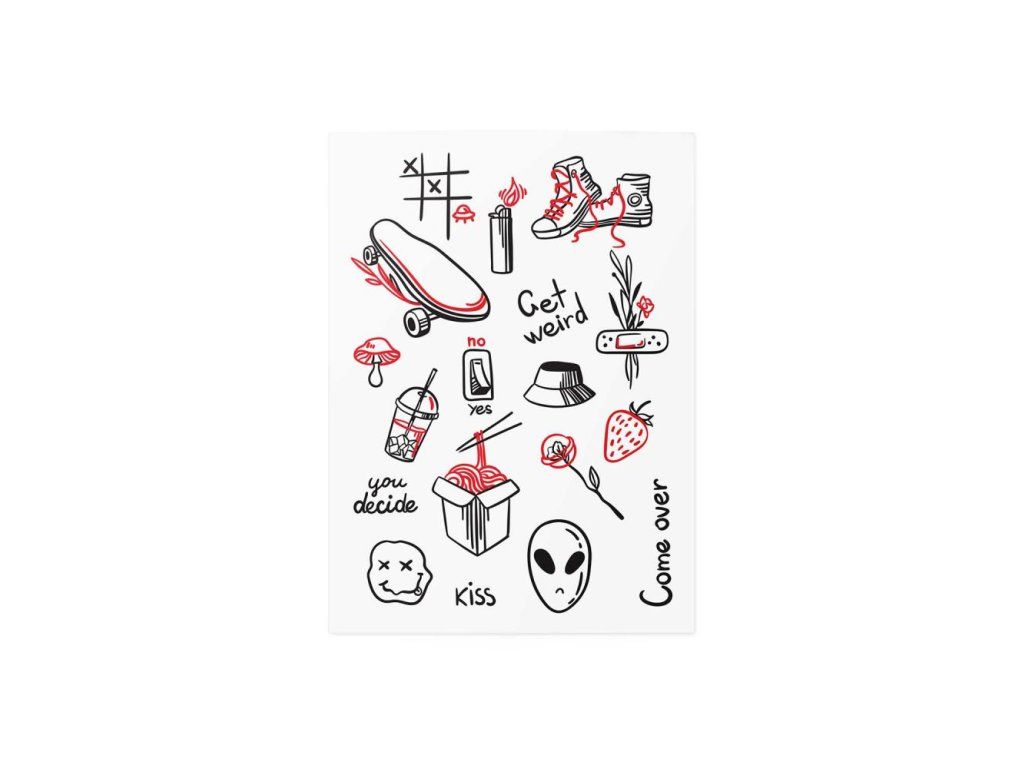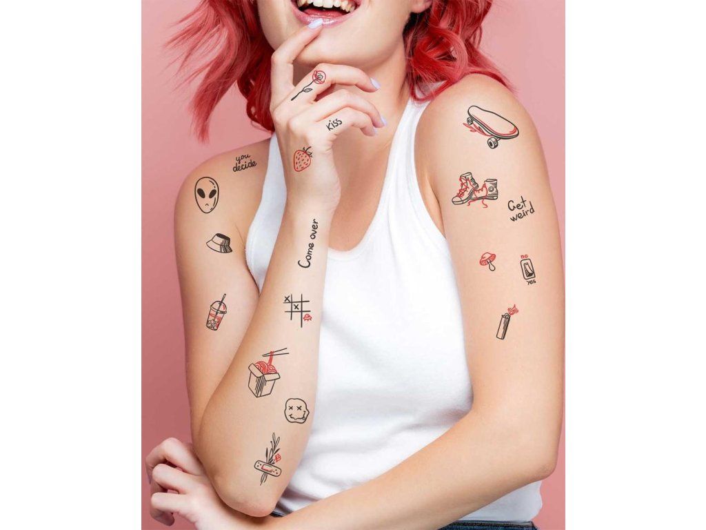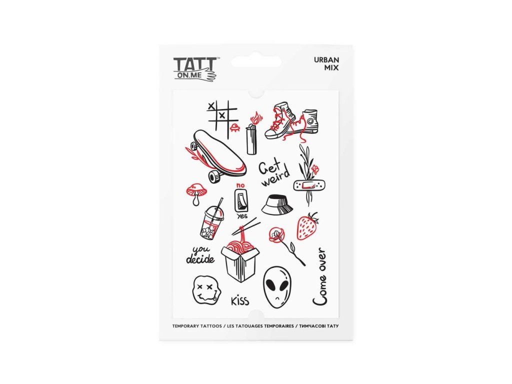 Nuž, povedzme si úprimne. Nie všetky tetovania musia mať hlboký symbolický význam. Niekedy sú to len tie divné veci, ktoré máme radi. Takže sme nakreslili niečo veselé pre náš Urban mix. Môžete to milovať alebo nie, žiadny problém. Spomenuli sme, že tetovania sú dočasné? Strihajte a kombinujte tetovania akýmkoľvek spôsobom. Tetovací mix obsahuje 1 hárok A6 plný tetovačiek.Dodatočné parametre