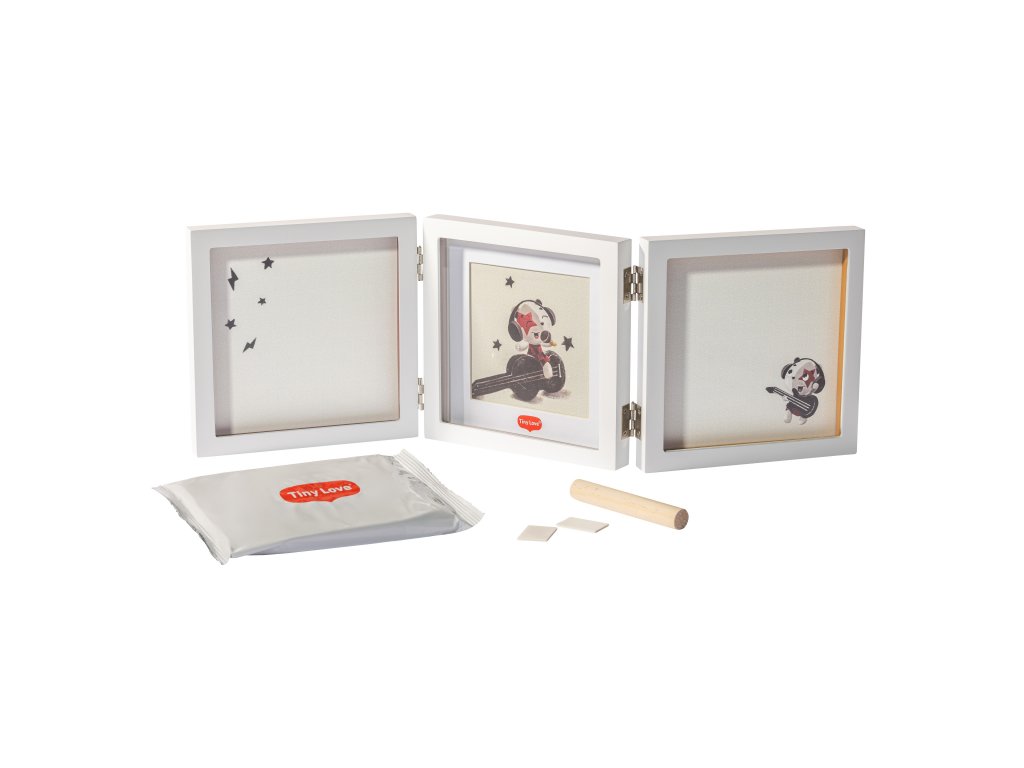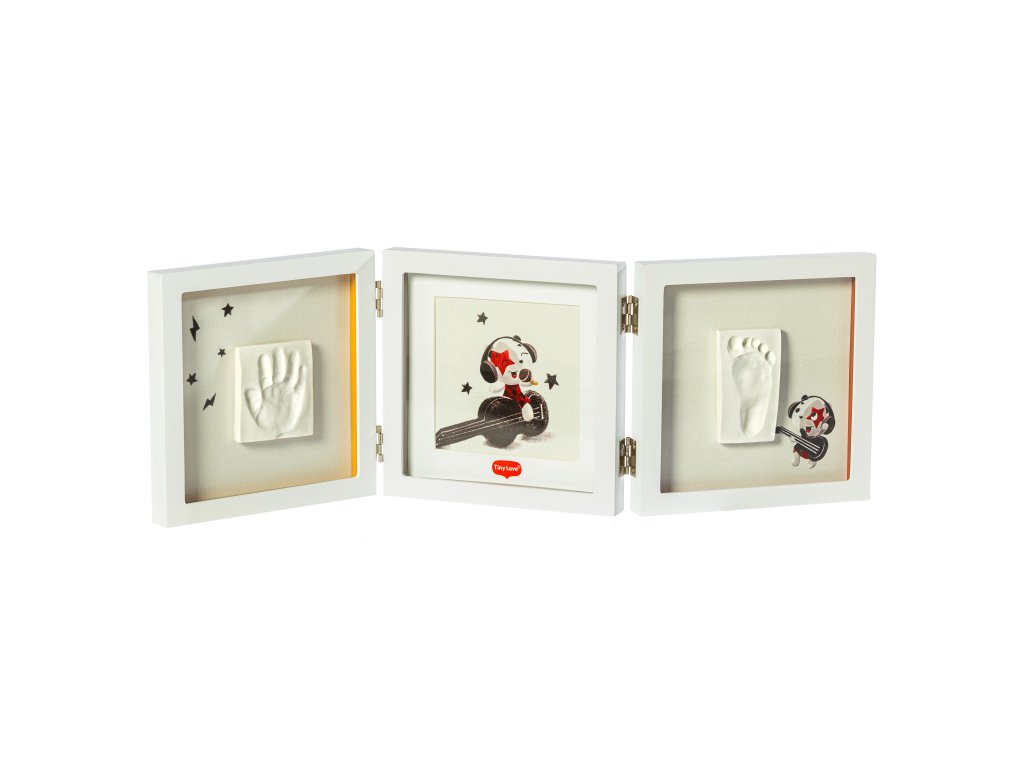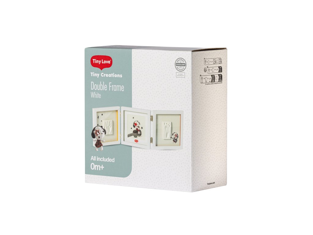 Dřevěný rámeček Tiny Creations Double Frame nabízí tři oddělené prostory pro fotografii a otisk ručičky a nožičky Vašeho miminka. Vyrobte si krásnou dekoraci, která vám zároveň pomůže uchovat vzpomínky na krásné období po narození vašeho dítěte.