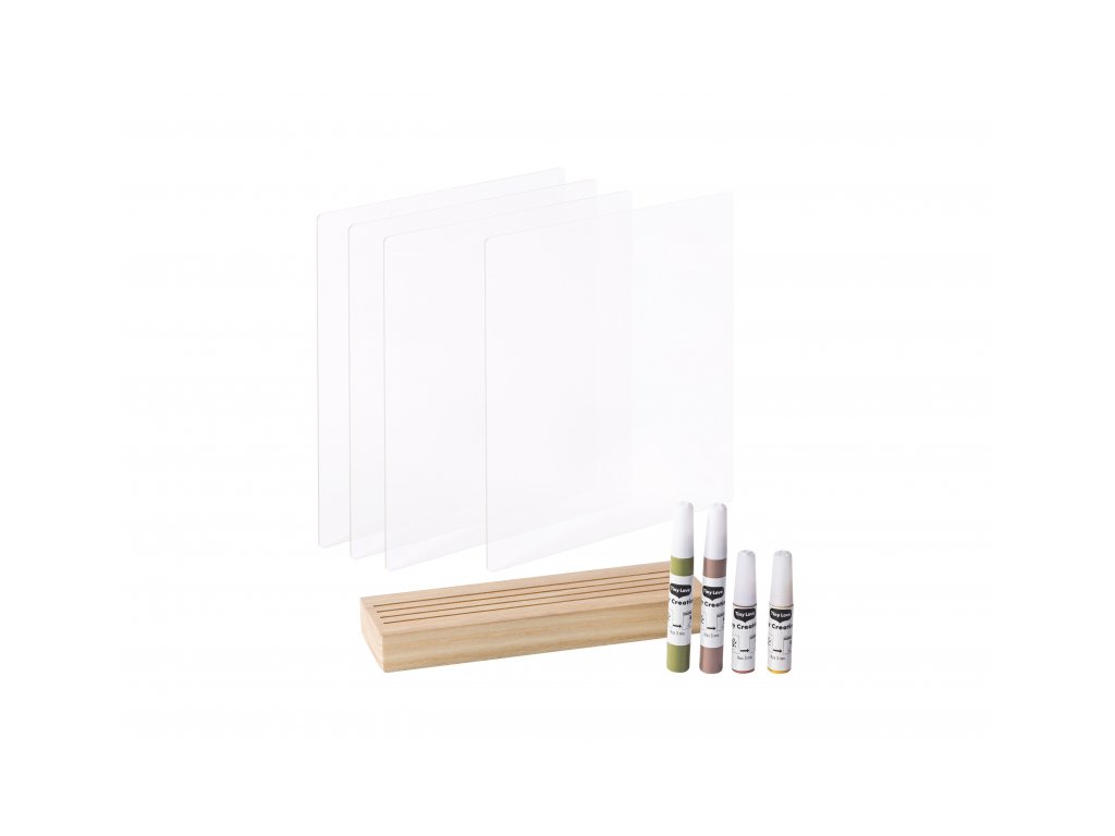 Drevený stojanček Tiny Creations Family Prints ponúka štyri priehľadné panely pre farebný odtlačok rúk celej vašej rodiny. Vyrobte si krásnu dekoráciu, ktorá vám zároveň pomôže uchovať spomienky na krásne obdobie, keď boli vaše deti malé.