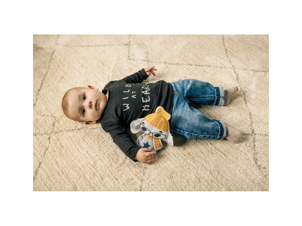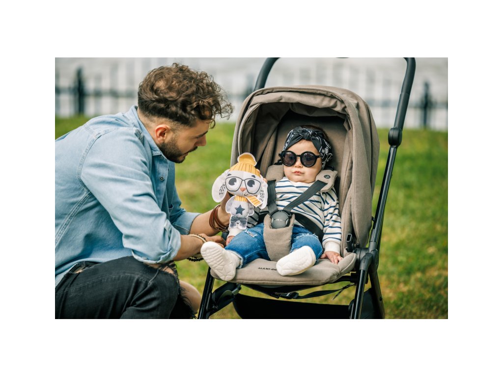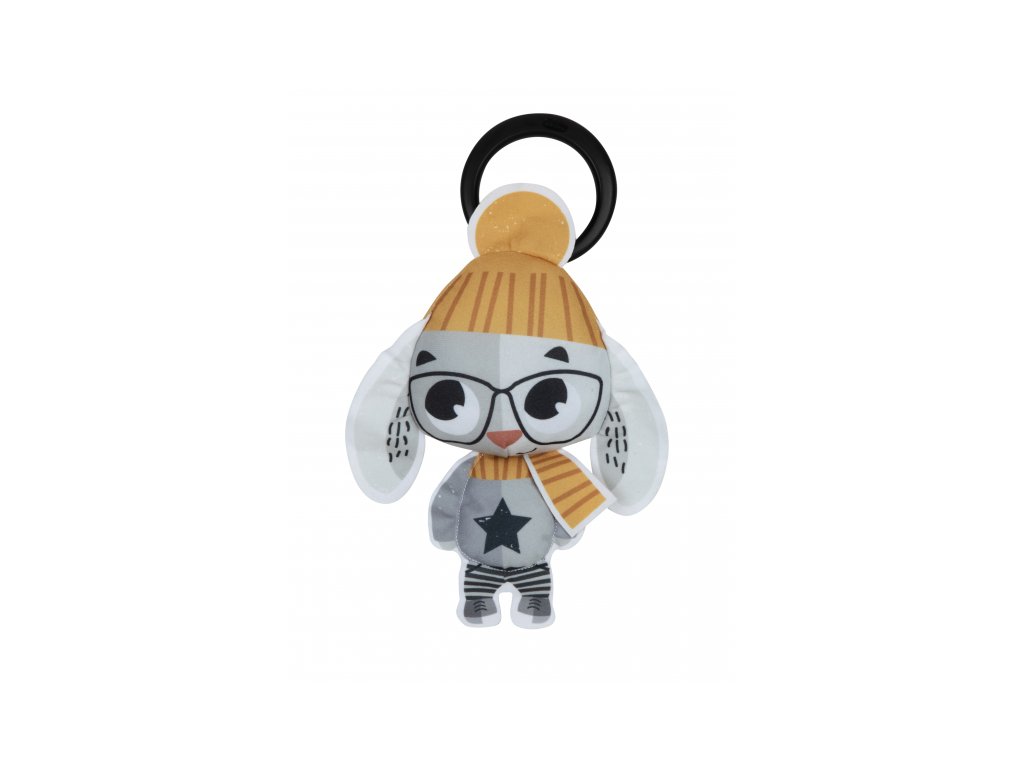 Originální chrastítko v podobě králíčka je vyrobeno z měkkého textilního materiálu. Hračka při pohybu chrastí, uši králíčka při zmáčknutí šustí. Díky plastovému kroužku je možné ji zavěsit na autosedačku či kočárek, aby mohla vaše dítě zabavit i na cestách.