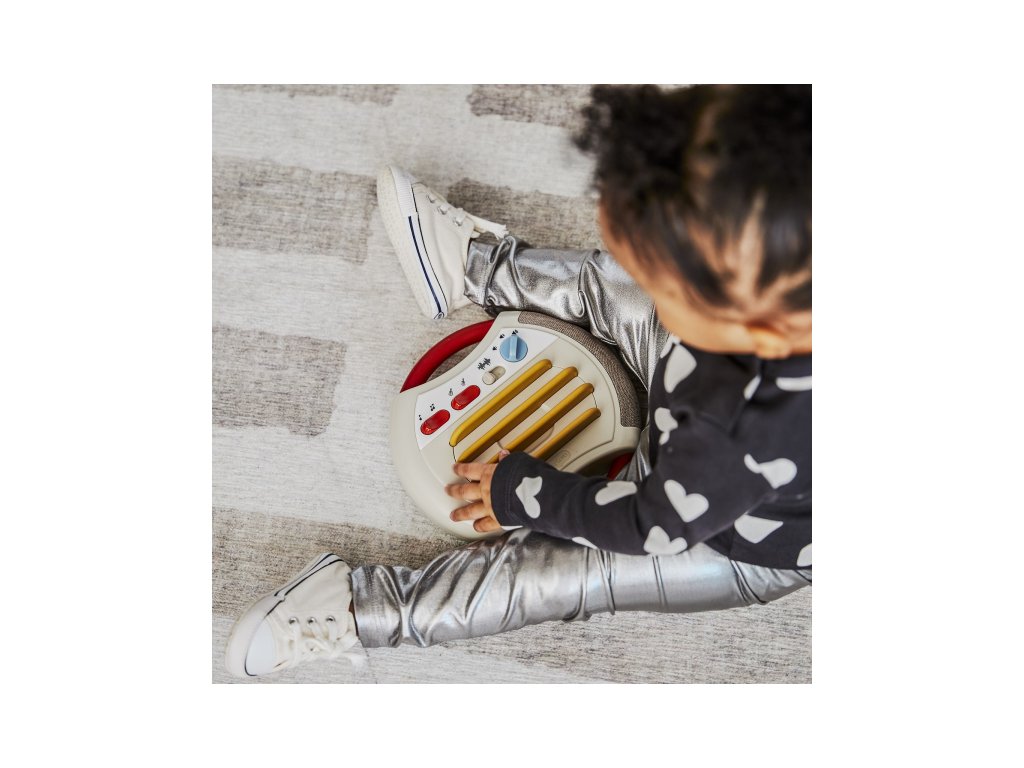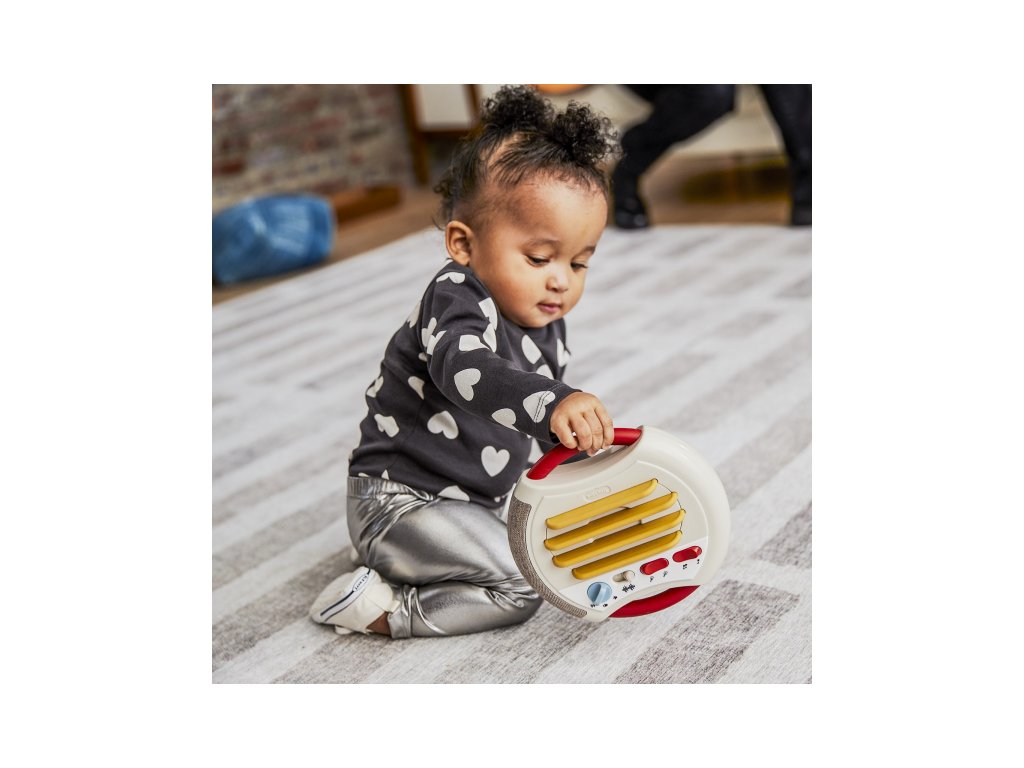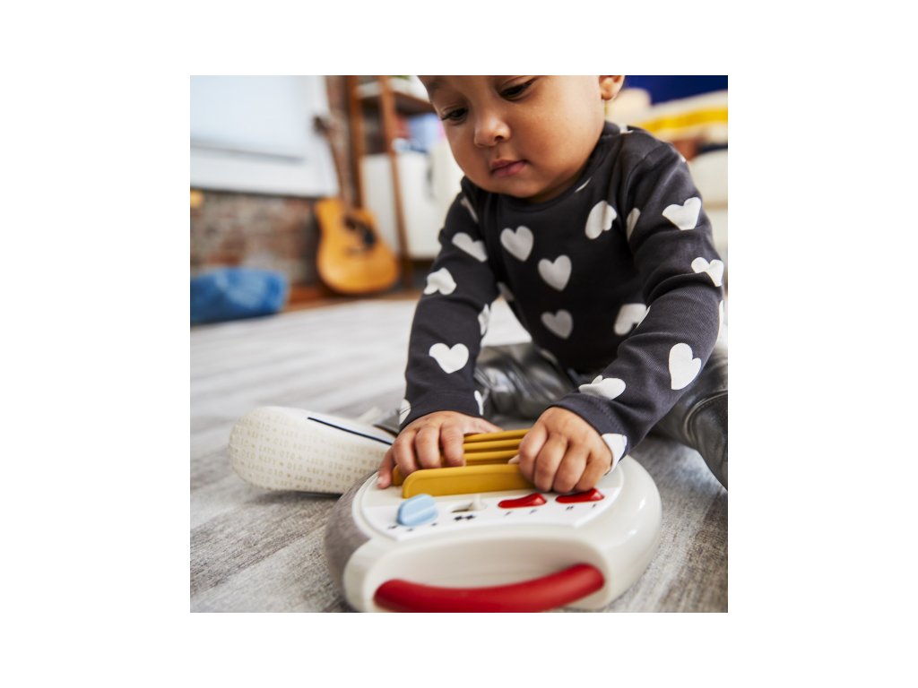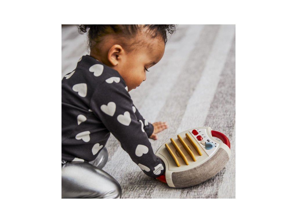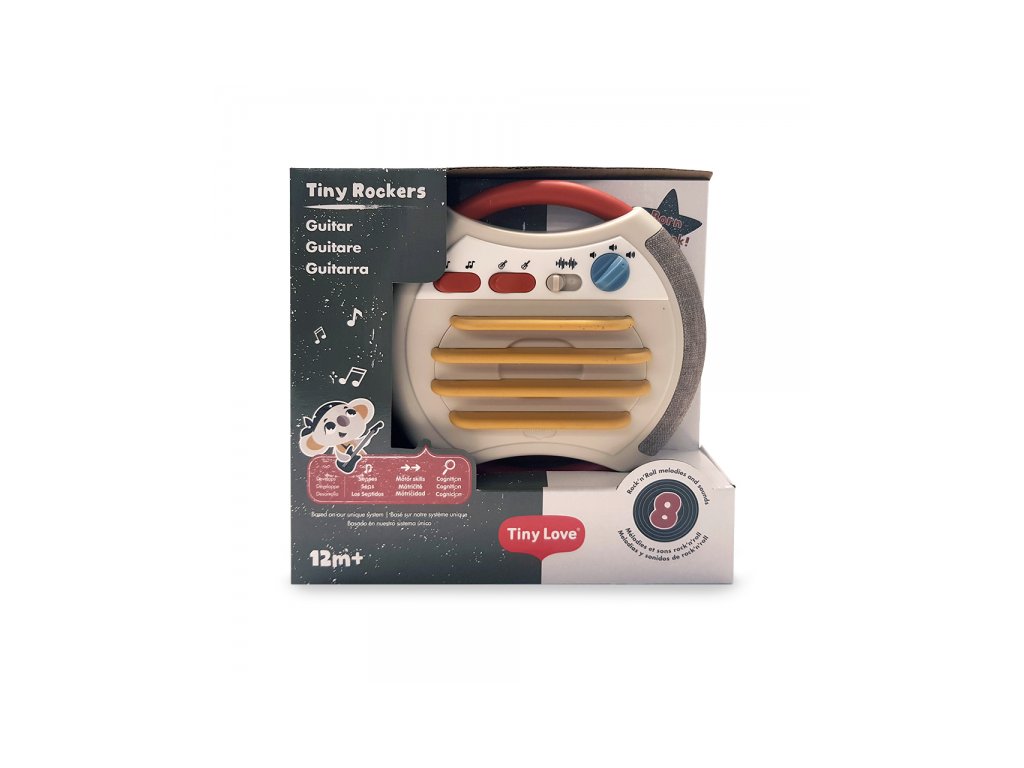 Hudobná gitara Tiny Love je pútavá hračka, ktorá zábavným spôsobom pomáha rozvíjať emócie a kreativitu vášho dieťaťa. Hračka ponúka 8 rockových melódií a umožňuje dieťaťu počúvať hudbu alebo ju použiť ako hudbu na pozadí pre vlastné muzicírovanie. Každá zo 4 strún napodobňuje zvuk strún gitary, navyše je možné prepínať medzi klasickými alebo elektronickými zvukmi. Pomocou posuvníka výšky môžete vytvárať zvukové efekty. Gitara s kvalitným reproduktorom je vybavená možnosťou vypnutia a ponúka 3 úrovne hlasitosti.