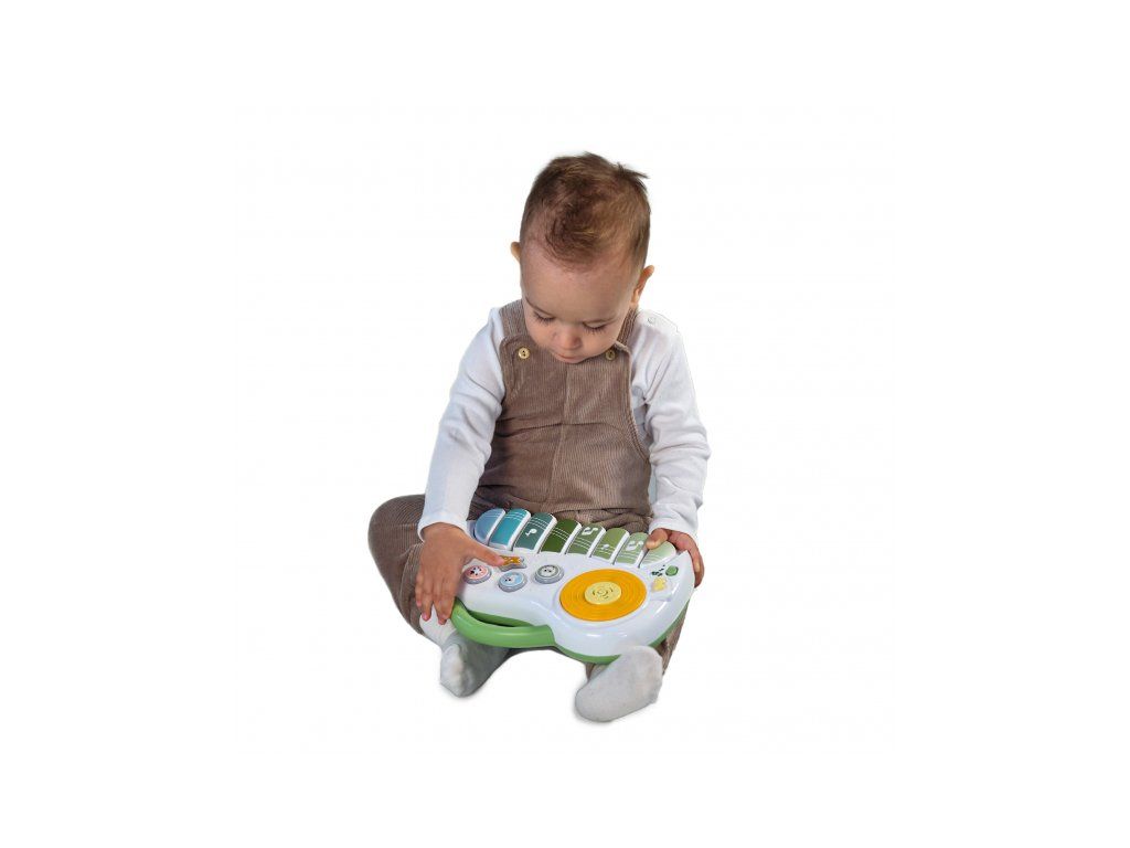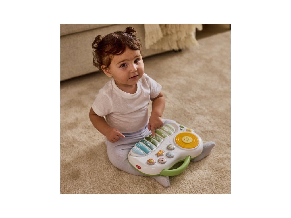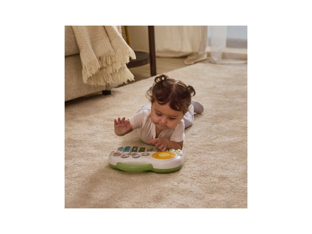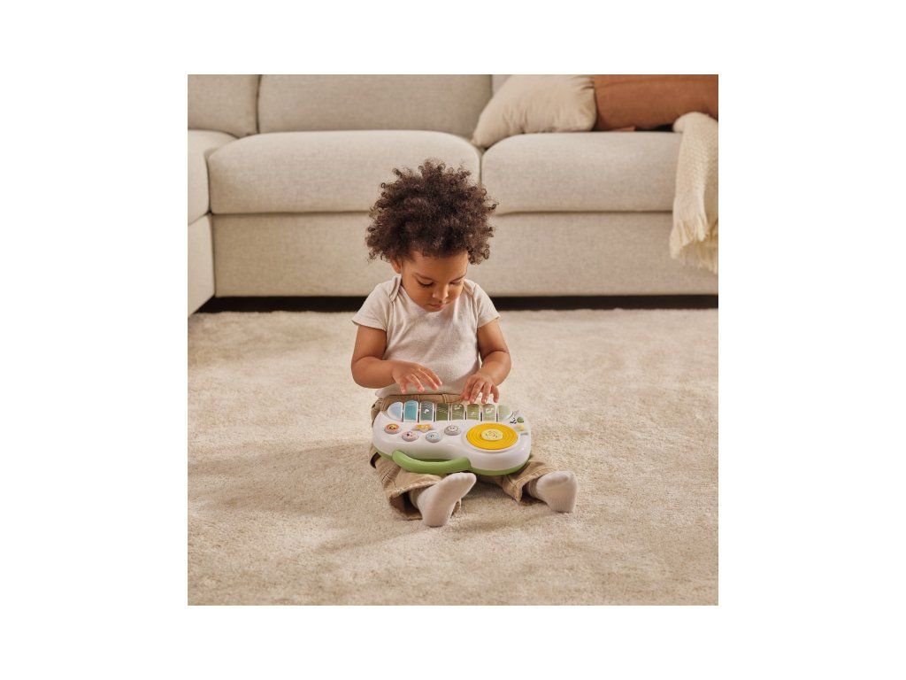 Hudobné piáno Tiny Love Farmers Funday deti zábavnou formou zoznamuje s hudbou, rytmom a zvukmi zvieratiek. Ponúka 4 režimy hry – od klasických tónov klavíra cez veselé melódie až po zvieracie zvukové efekty – a vďaka svetelným tlačidlám dokáže dieťa dlho udržať v pozornosti. Skvele sa hodí aj na hru na brušku: svetlá a zvuky motivujú dieťa zostávať aktívne dlhšie, čo podporuje posilňovanie a prípravu na ďalšie motorické míľniky. Stlačenie klávesov a tlačidiel navyše pomáha pochopiť princíp príčina – následok, pretože dieťa vidí, že jeho akcia vyvolá svetlo alebo zvuk. Piánko je ideálne ako pre samostatné objavovanie, tak aj pre spoločnú hru s rodičmi.