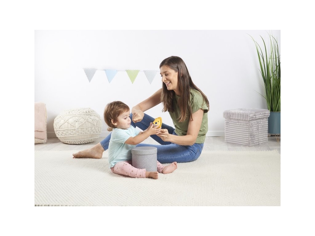 - hračku odkryte alebo otvorte škatuľu či zásuvku, kde bola schovaná, hračka bude tlieskať a jasať