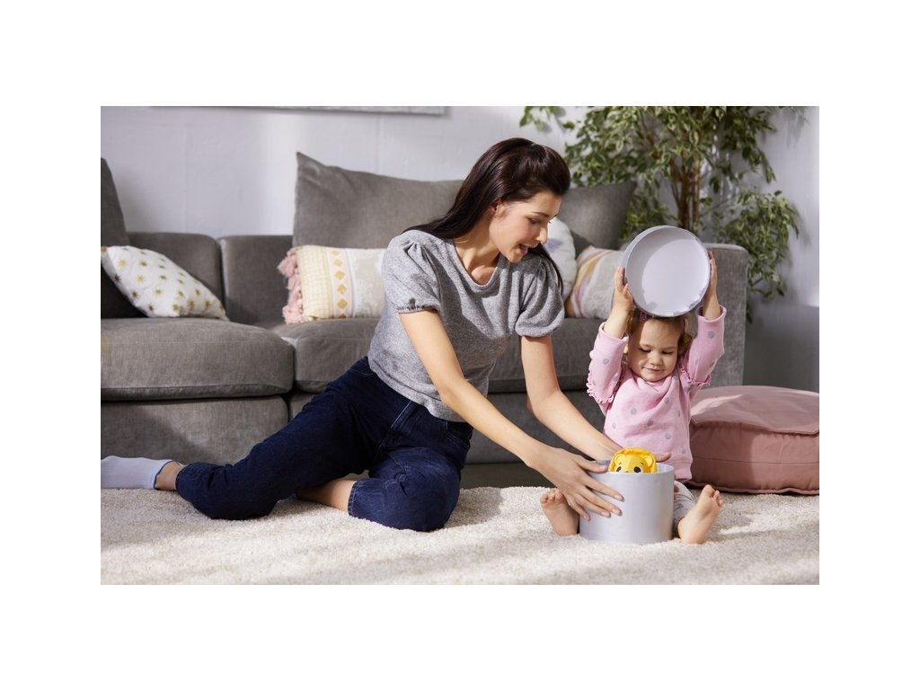 - hračku zakryte dekou alebo uschovajte do krabice či zásuvky, bude pískať a volať