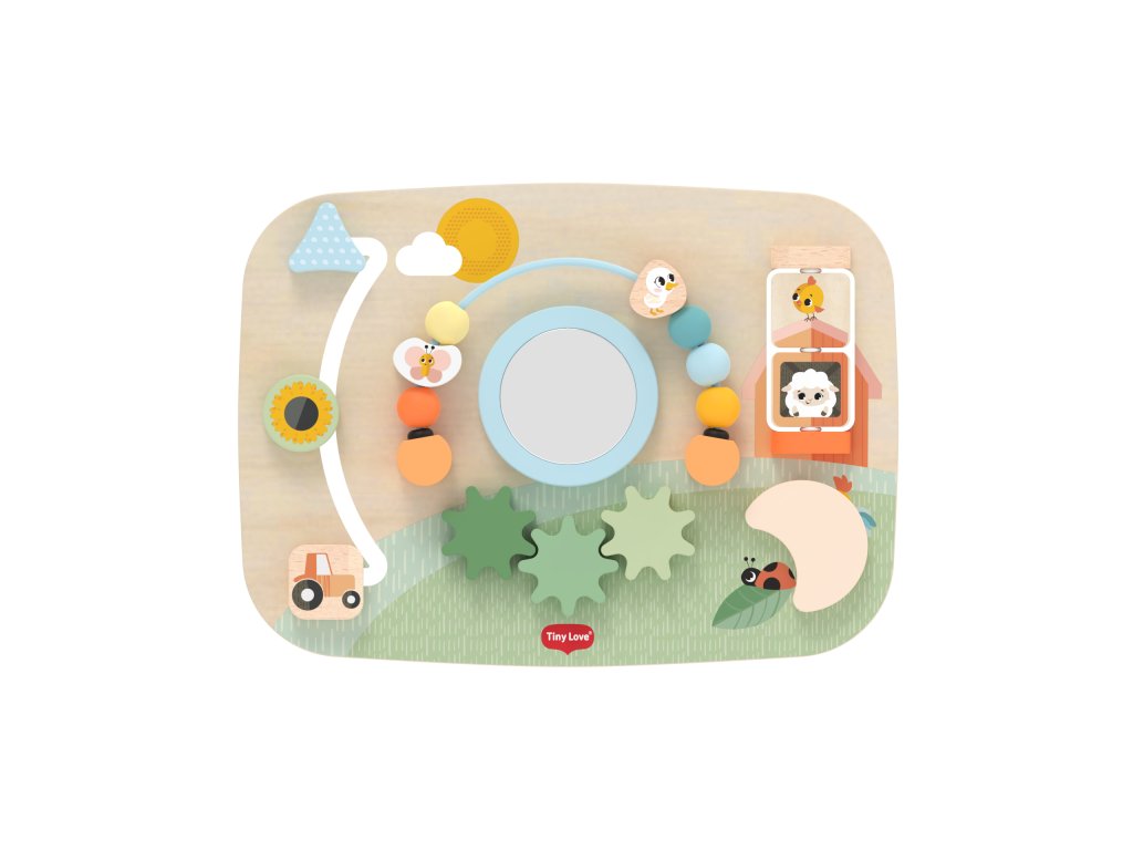 Drevený pult s aktivitami Tiny Love je hračka plná pohyblivých prvkov, ktorá podporuje objavovanie, sústredenie aj prvé logické uvažovanie. Pult je navrhnutý tak, aby rástol s dieťaťom: hodí sa pre hru na brušku, v sede aj v stoji, a je tak využiteľný v rôznych vývojových fázach dieťaťa.